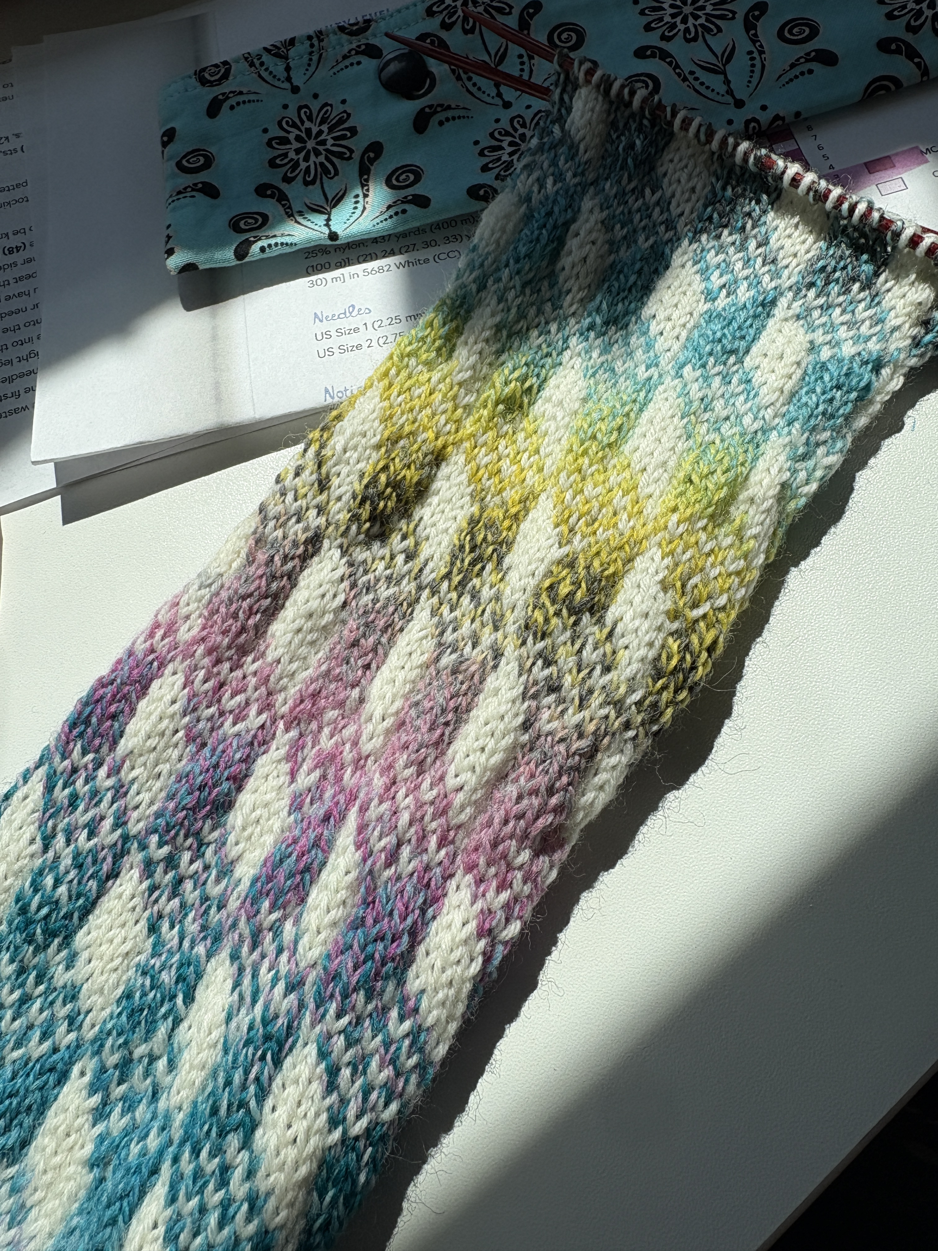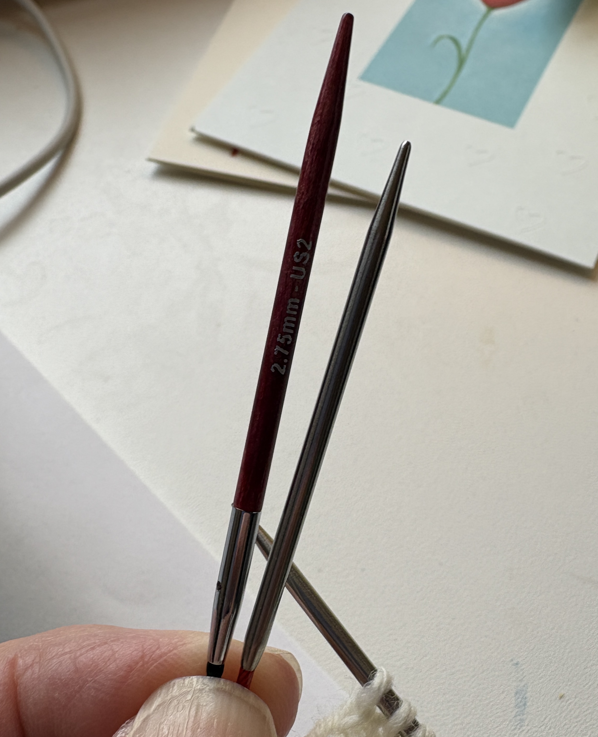 As you can see, there is a reason why! The Knit Pro tip is quite a bit longer when you’re considering the 9″ circle is finite. So, I’ll wait for the 9″ Chiao Goo to come in before moving along (or knit with my DPNs until then.) Anyway, the socks are quite pretty and I am excited to get them moving along so I can wear them and so I can start another pair.