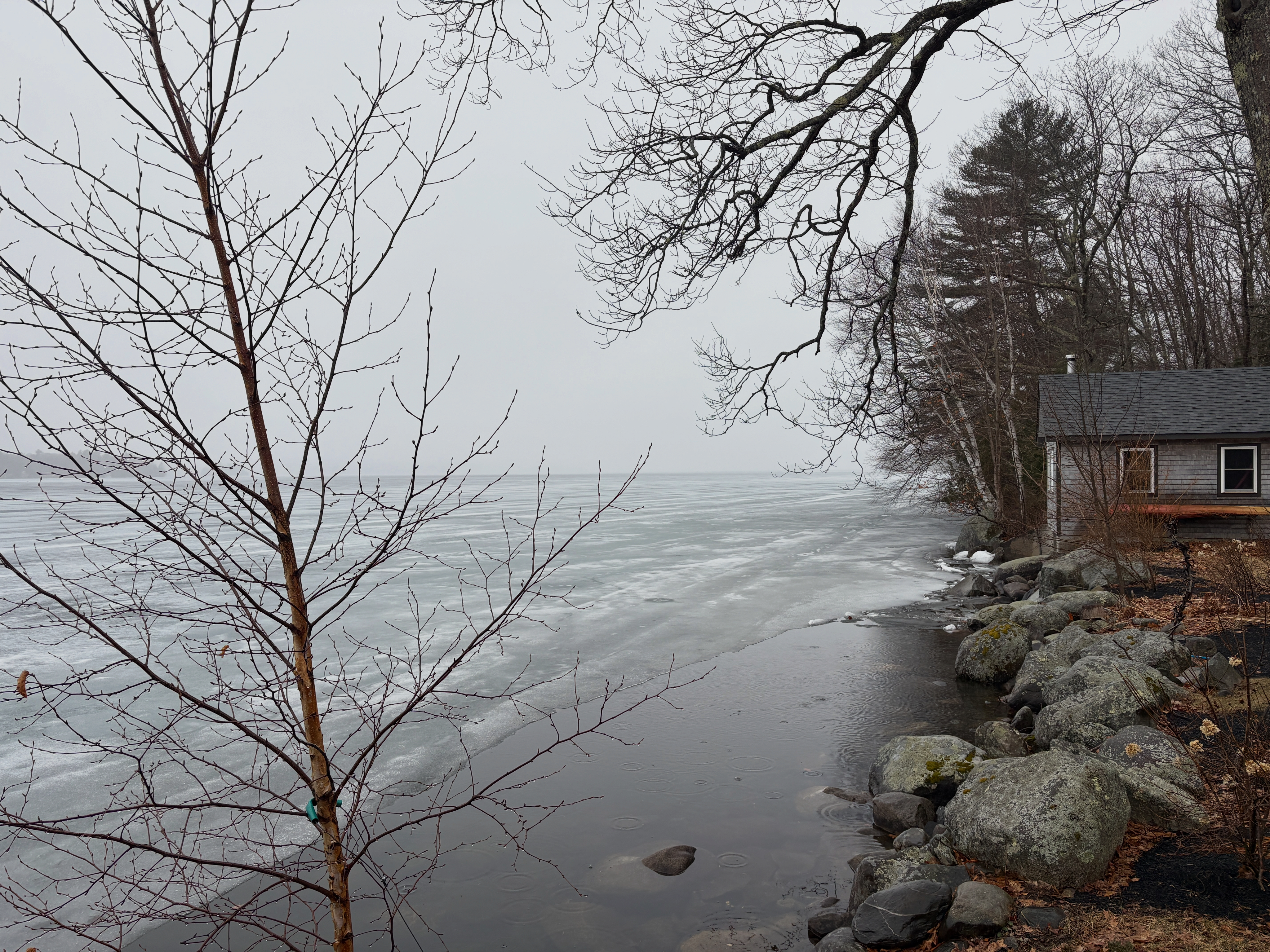 The lake ice is thinning a lot and ice will no doubt be out very soon. Maybe by the time I get back from my trip to Quebec City? Maybe before. There are parts of the lake where the ice is already gone and we have some water at the edge of the lake. The big sheets of ice that cover the shoreline are gone. The ice has shrunken a lot and will start breaking up and moving north with the flow of the water soon. If I’m here, there will be a video.