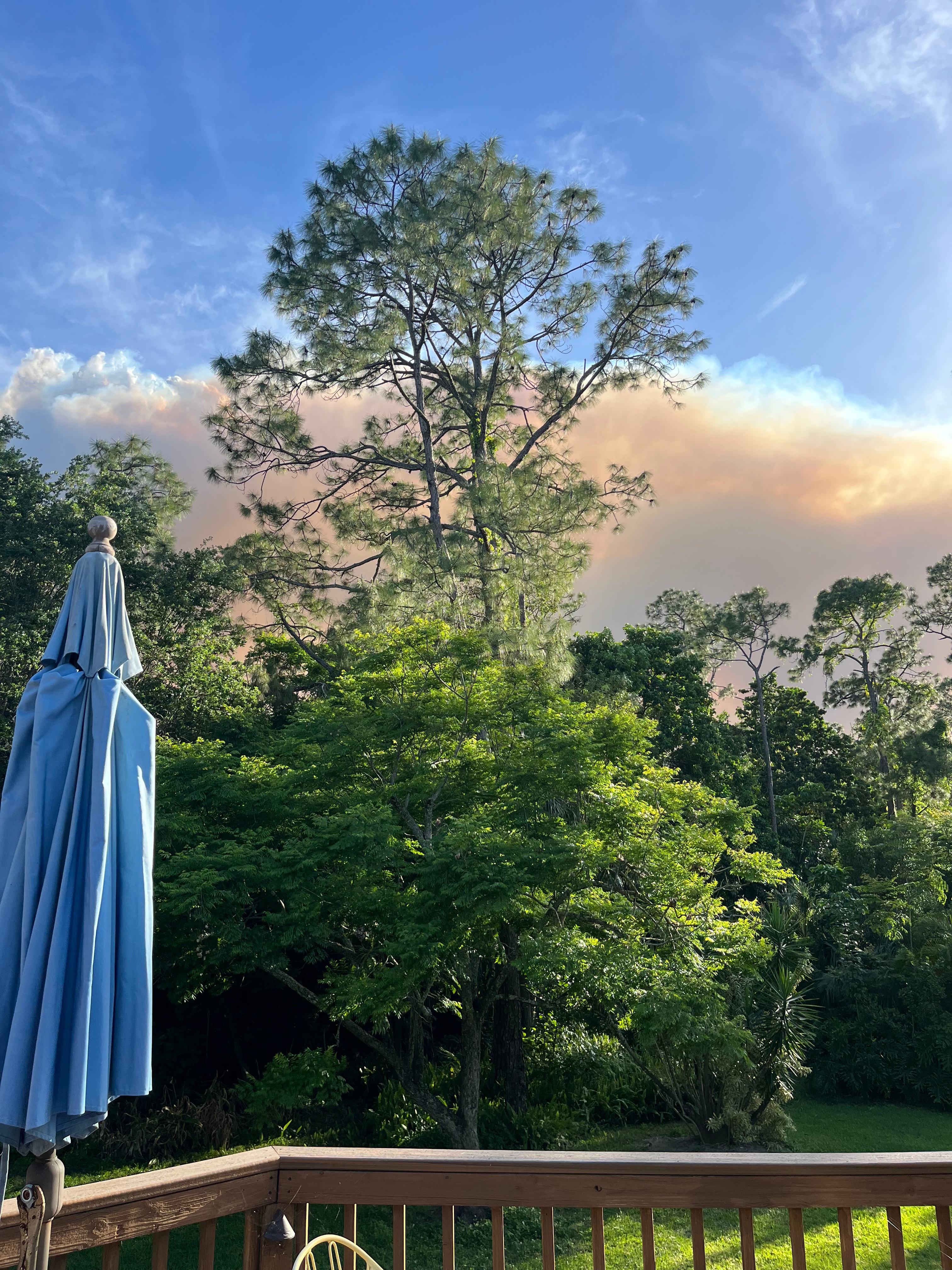 It’s the dreaded “tax day” today in the US. Ours are done and dusted and it’s a huge relief to get it off my to-do list every year. I totally stress about it every year (and we have a pretty simple tax return.) Today’s weather is damp and gray. We had more rain yesterday afternoon and I am welcoming every single drop as a prescription against wildfires. We heard about a wildfire in Naples, FL (my hubby’s hometown) on the news last night and I texted dear friends who we believed to be too close to the fire and we were right. They’ve got their bags packed and by the door in case they’re told to evacuate. This is a photo from their deck … the smoke from that fire is way too close.