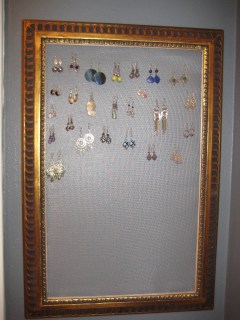 I really like it. I’m trying to figure out, however, how to hang the earrings that won’t hang easily … the ones with French clasps and posts. But for now, I think I’ll just go and find the rest of my costume jewelry which is in a box somewhere…