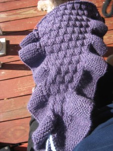 My Kate Middleton shawl is zipping along (yeah, well, not really… it’s slow going when you’re increasing only one stitch every other row!) I really like this pattern and if I could require myself to sit and work on it for a couple of days, I’d be half way through! It’s going to be worth it though and I adore the color I picked.