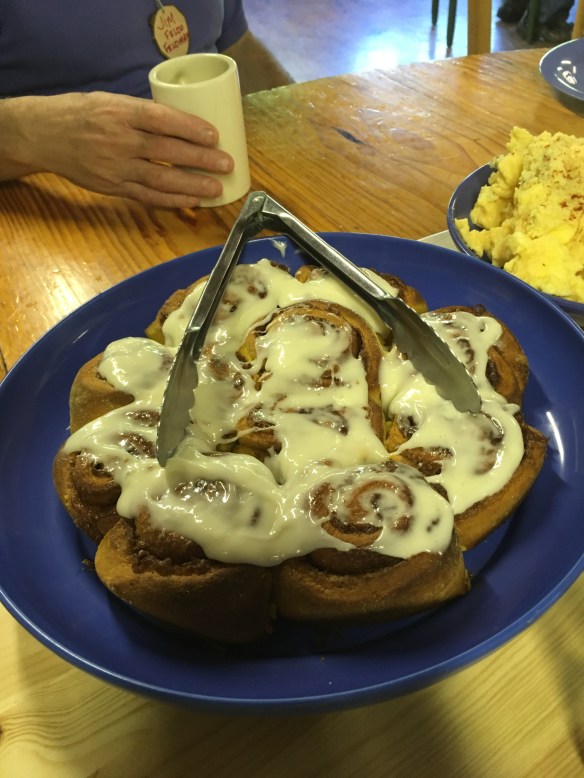 The food in the old dining hall is still amazing! Look what we were served on Sunday morning with our eggs and fruit, etc! (Family camp has its own dining hall with equally wonderful food! Much of the herbs are grown on site and there are cows on the hill who provide wonderful fresh milk and from which cheese is made … yummy cheese!