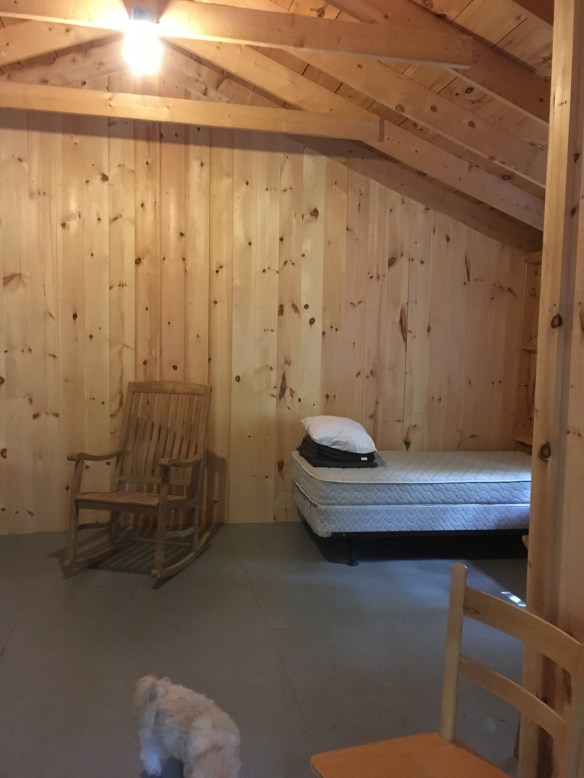 Half of our cabin … two beds, rockers, dressers, full bath. Totally comfortable.