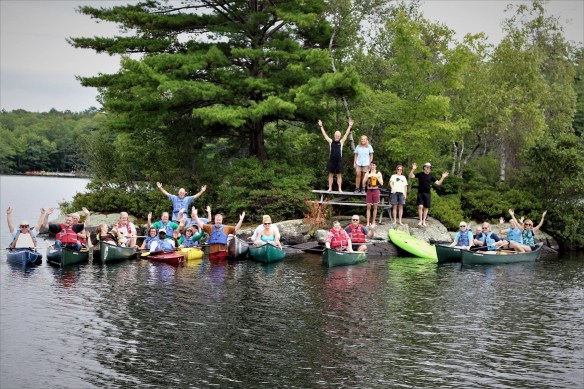 On Saturday afternoon, we all met at the cove for the traditional “Loon-athon event. It was a chance to revisit the beautiful lake that we swam in a water-skied on. A time for fellowship on the water. And an excellent photo op!