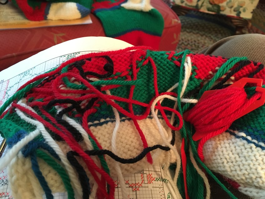 IMG_1852 Published November 15, 2017 at 4032 × 3024 in Ho! Ho! Ho! No More UFO! Intarsia creates five MILLION ends to be woven in!