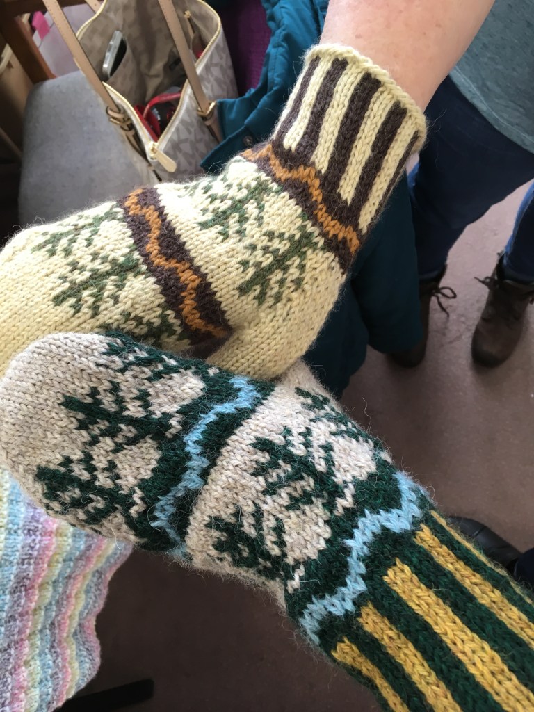 IMG_2541 Published March 18, 2018 at 3024 × 4032 in Winter’s Refusal … getting stuck Maine Woods and Rivers Mittens; top by Terri and bottom by Peggy