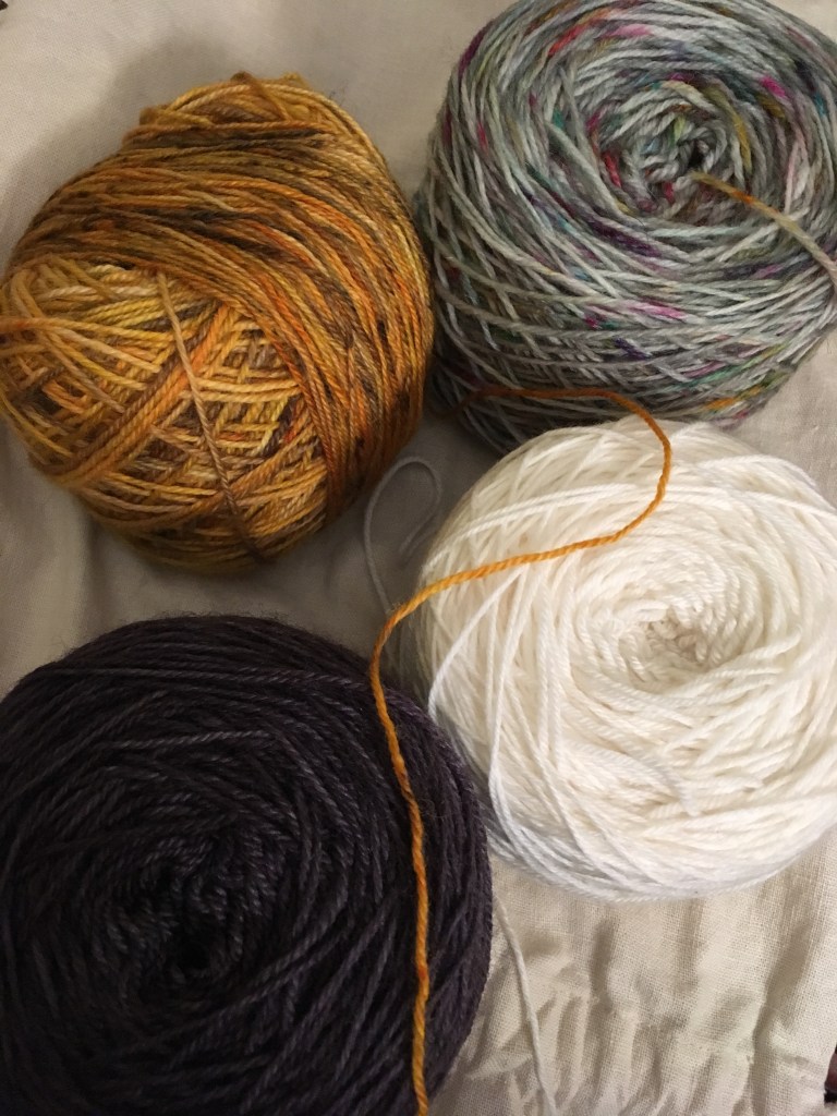 IMG_2756 Published May 27, 2018 at 3024 × 4032 in Addition by Subtraction Lit-a-long Charcoal and White are dark and light. Gray speckle is blender. Gold is “pop” of color!