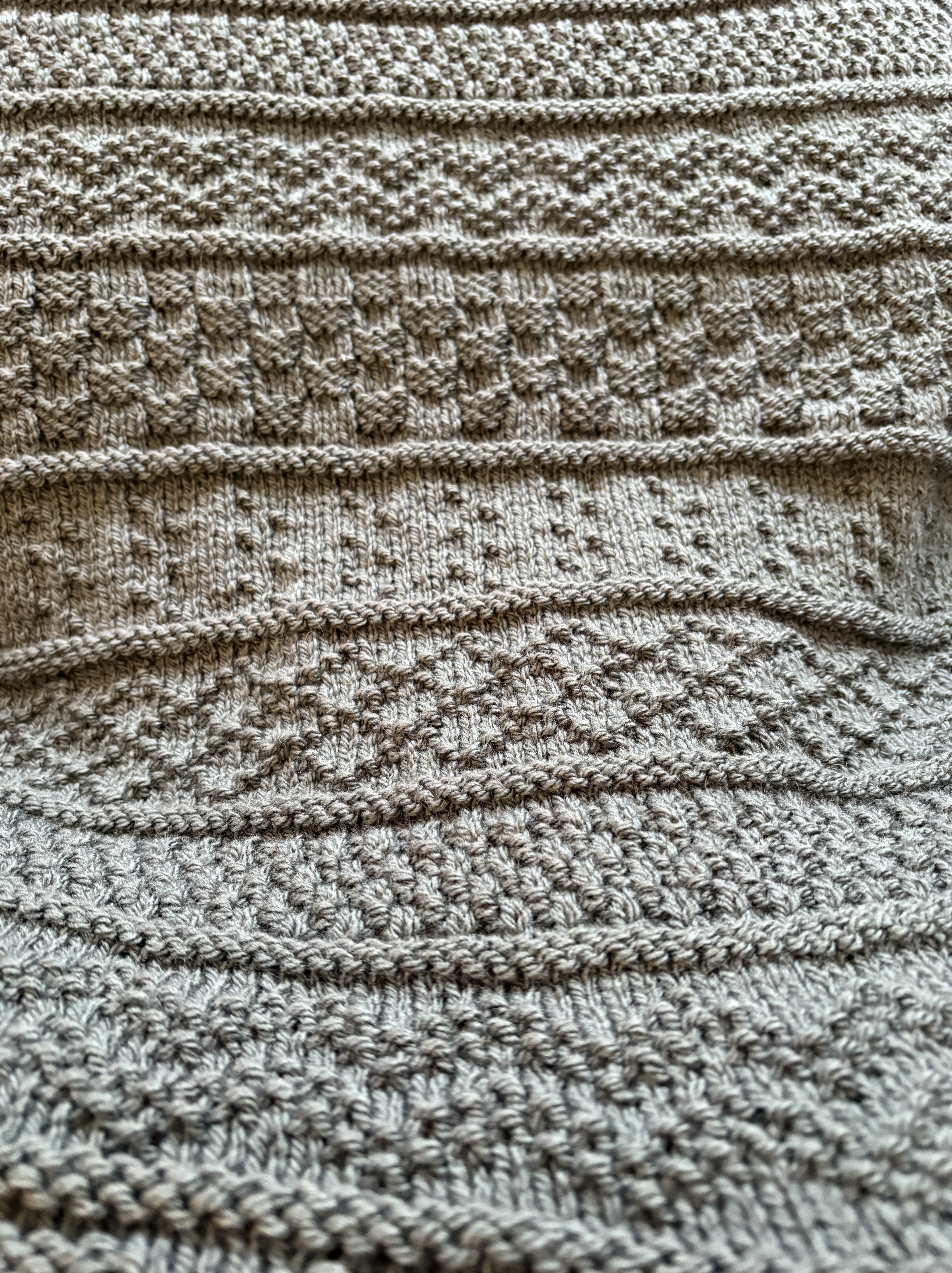 I’ve also been working on my Gansey Afghan. To be honest, this may be getting most of my attention. It’s not a difficult knit, the blanket in my lap keeps me cozy and warm, and I am really enjoying the yarn and the different textured stitches. I’ve just finished the first ball of yarn and I have one more. I’m knitting this one with Hayfield Aran with Wool which comes in a 900 yard ball leaving very few ends to weave in and it’s going to be washable. The color isn’t coming up well in photographs though. It’s a medium sage-y green and it was on the clearance table at work. I grabbed it up thinking it’d be for my brother and realized he would never use it … he’s always warm. SO, I have re-thought who will get it and I think it’ll go to my daughter who likes earth tones in her house. I don’t think I’ve made her anything other than socks in forever and I think she’ll like it.