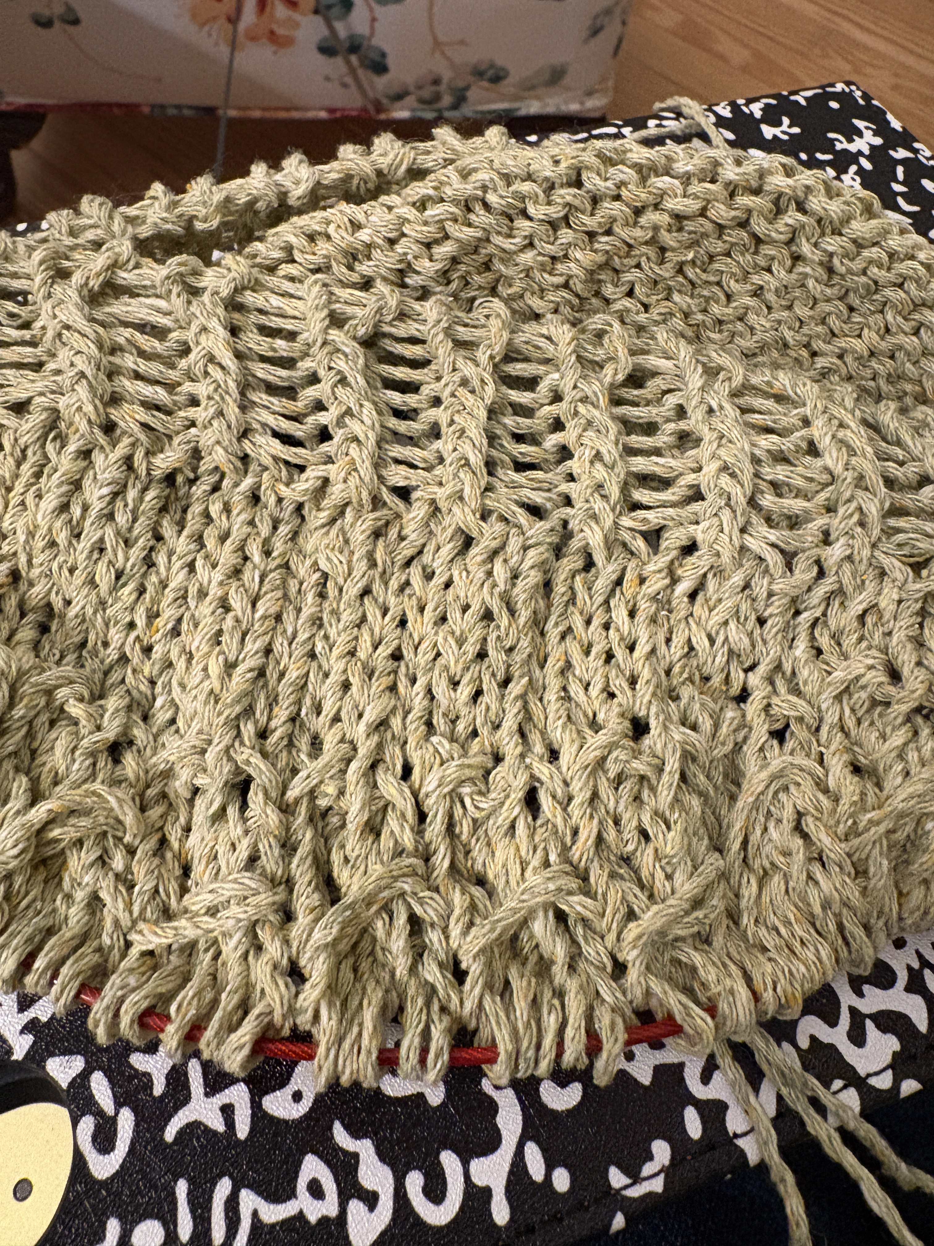 I also worked on my Ranunculus sweater in the evening. I’m making good progress and enjoying the pattern. It’s a neck down construction which will be nice so I can try it on as I go. The yarn is deep stash that I believe I bought in Mississippi at a shop that we found traveling from Louisiana to Florida over a decade ago. The yarn has been sitting quietly in my stash for years. I think I tried to make it into something once and didn’t like it so I frogged it and put it back in my stash. This Ranunculus seems to be the perfect excuse to pull it back out. The yarn is by Shibui called Heichi and is now discontinued. The color is called lichen and that’s a pretty perfect name for the color. I have never been a “green” person but it’s growing on me.