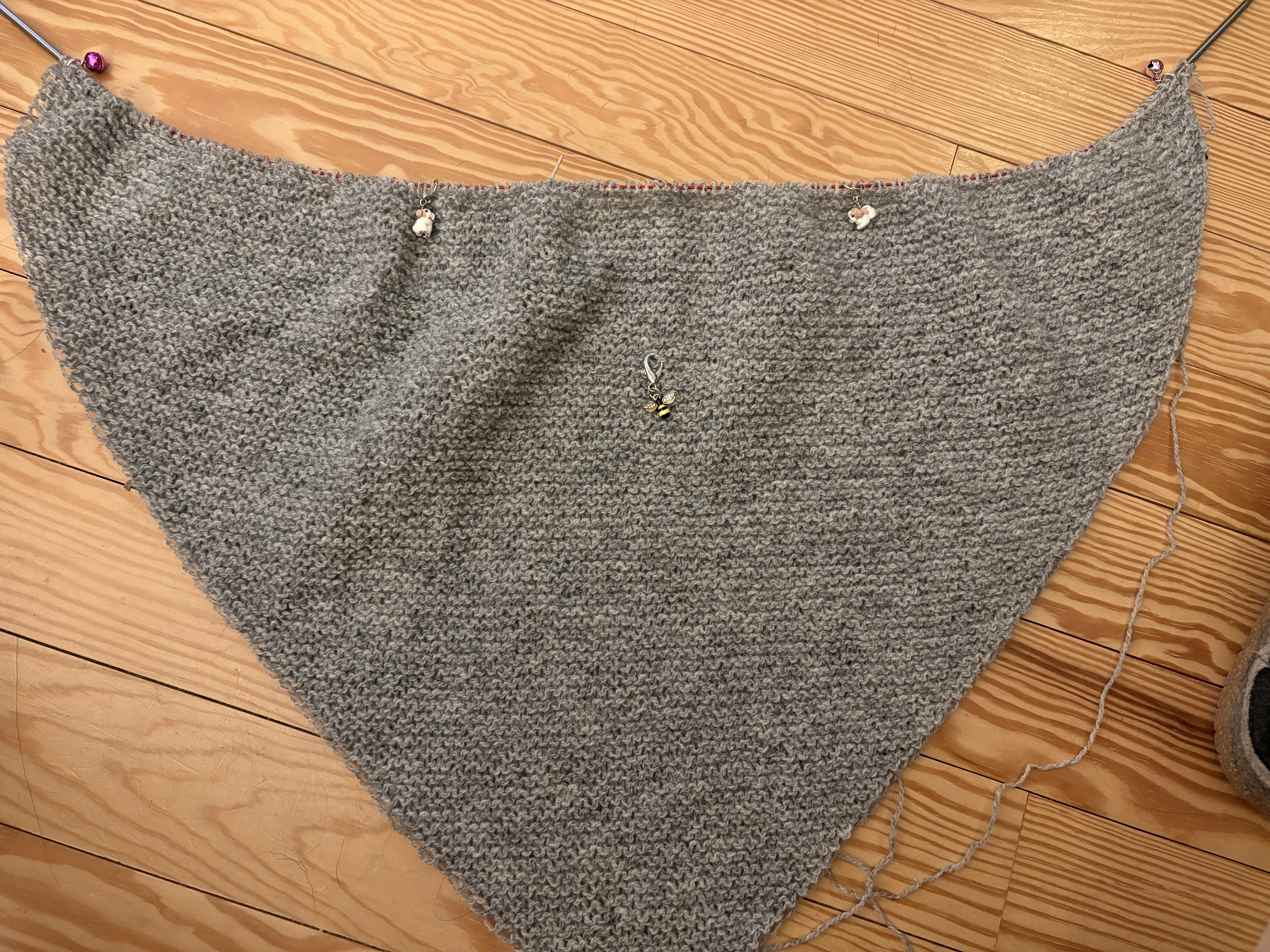 I have added the third little ball of MC yarn with a spit splice so there are no ends to weave in at the end and it’s getting bigger for sure. I have a feeling this will become my atelier shawl for those times when I need a little something over my shoulders as I work.