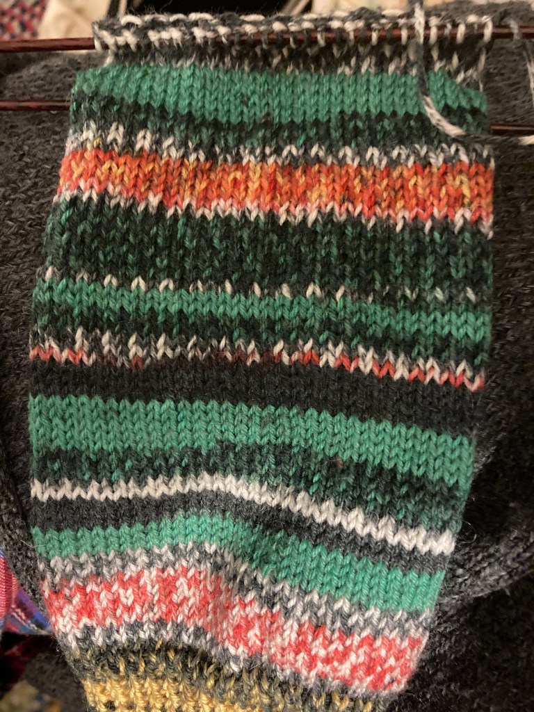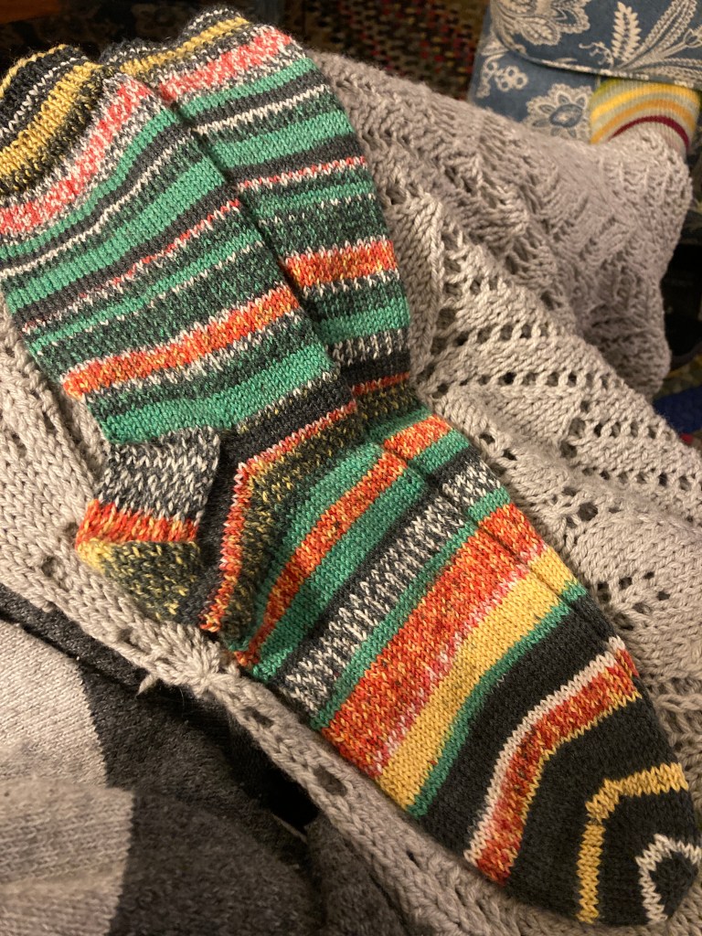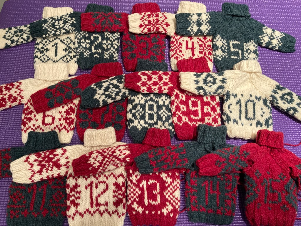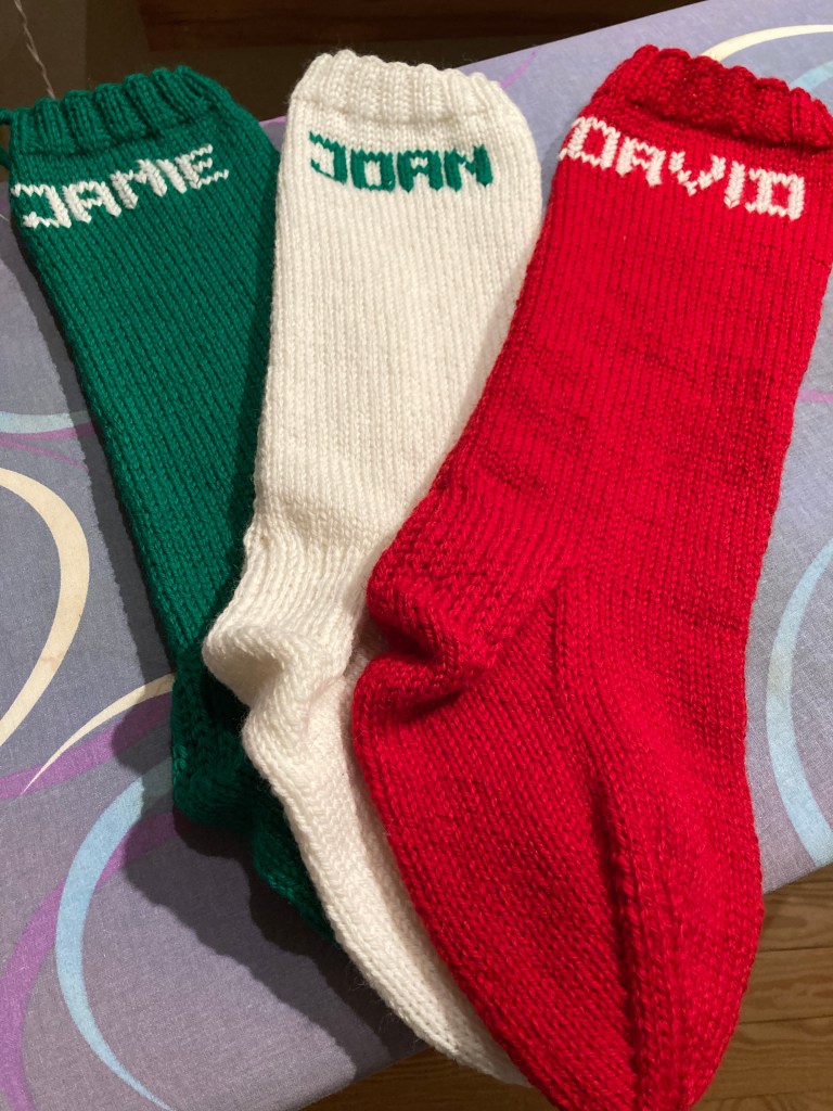 I totally enjoyed knitting little sweaters for our future Advent calendar. I’ve made it to #16 which is still on my needles and 14 and 15 are waiting to be seamed a little bit and ends woven in. But I’ll get them done this year for sure. I completed three sweaters this year. I’ve worn my Elton several times – including on my trip to Rhinebeck in the fall. I even wore it buttoned wrong … all around Rhinebeck and meeting so many of my knitting idols. I love my Patsy’s Traveling sweater and my Fine Sand, too. I’ll enjoy wearing them all in years to come. I didn’t knit socks every month this year but I got several pairs made. I gave most of them to my girls. My sock drawer is pretty full! I owe my hubby his Christmas socks … I hope to get the socks knit in January.