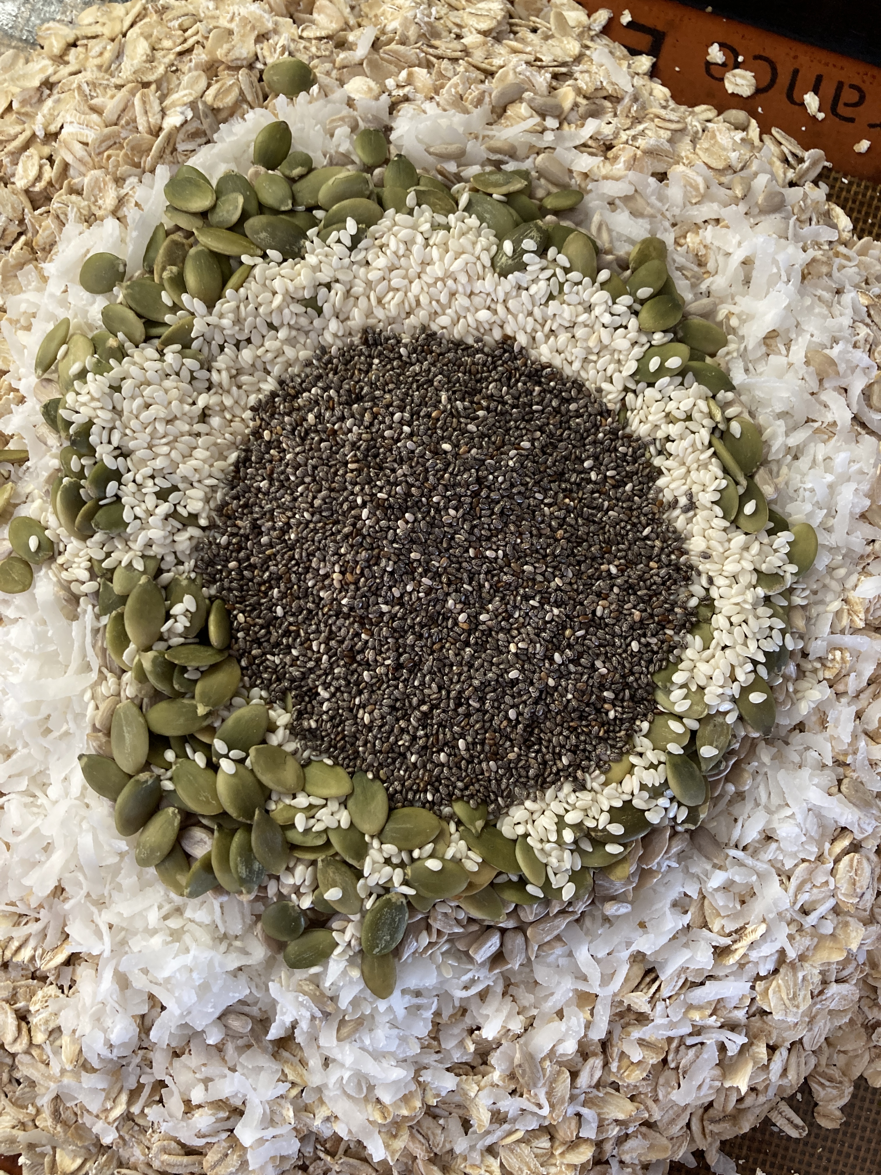 I made a new batch of granola this morning for the women I work with. I may need to make a second batch this afternoon because I’m not sure this will be enough to fill all of the jars. It’s down to the wire and I hope I have enough oatmeal left in my canister! I really am “off” if my baking cabinet isn’t properly stocked.