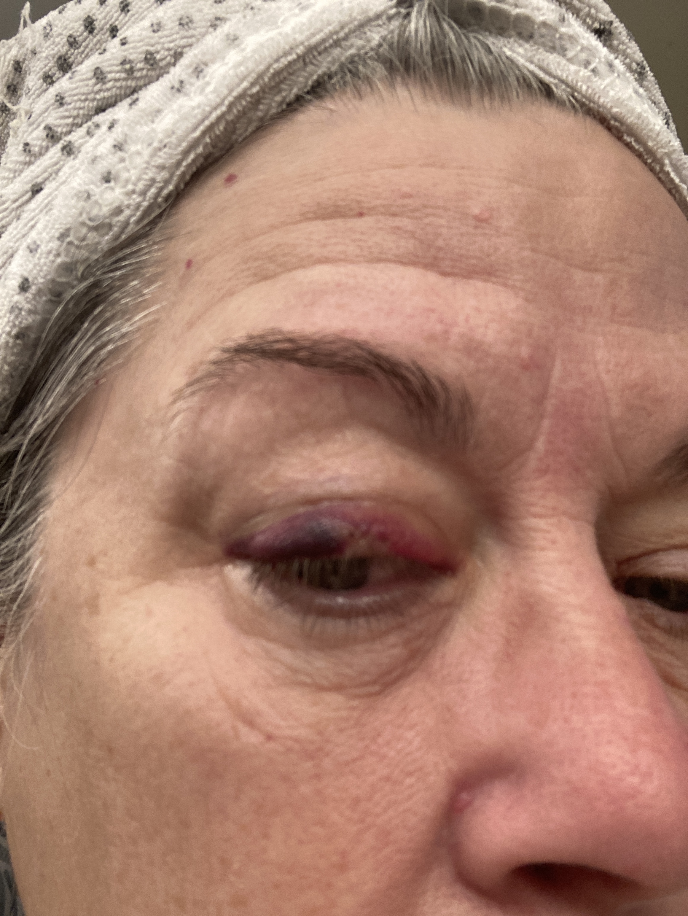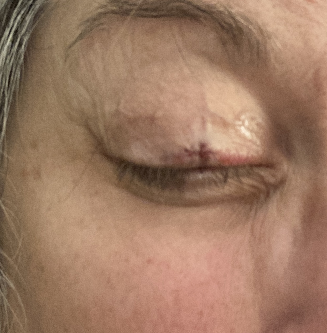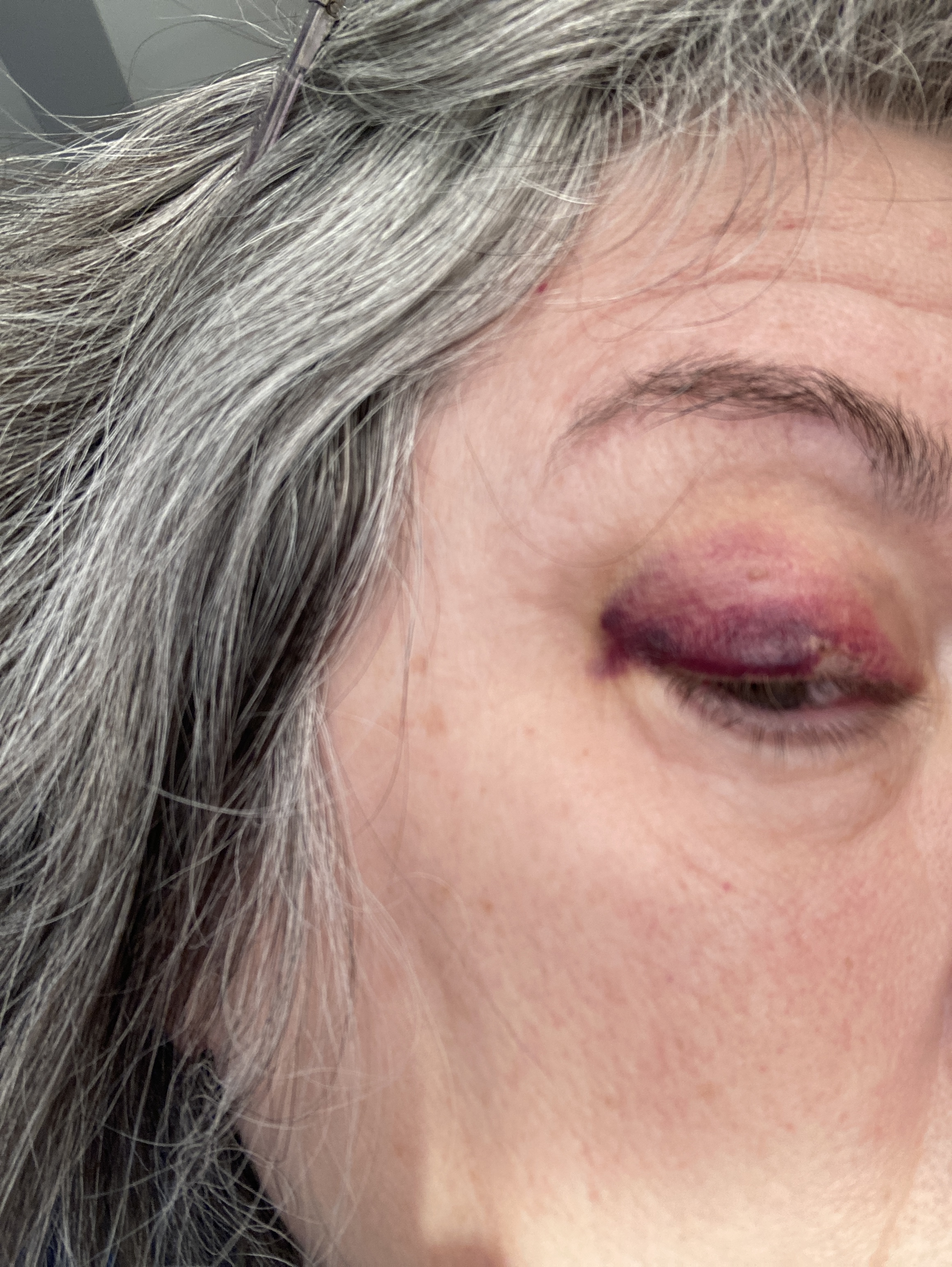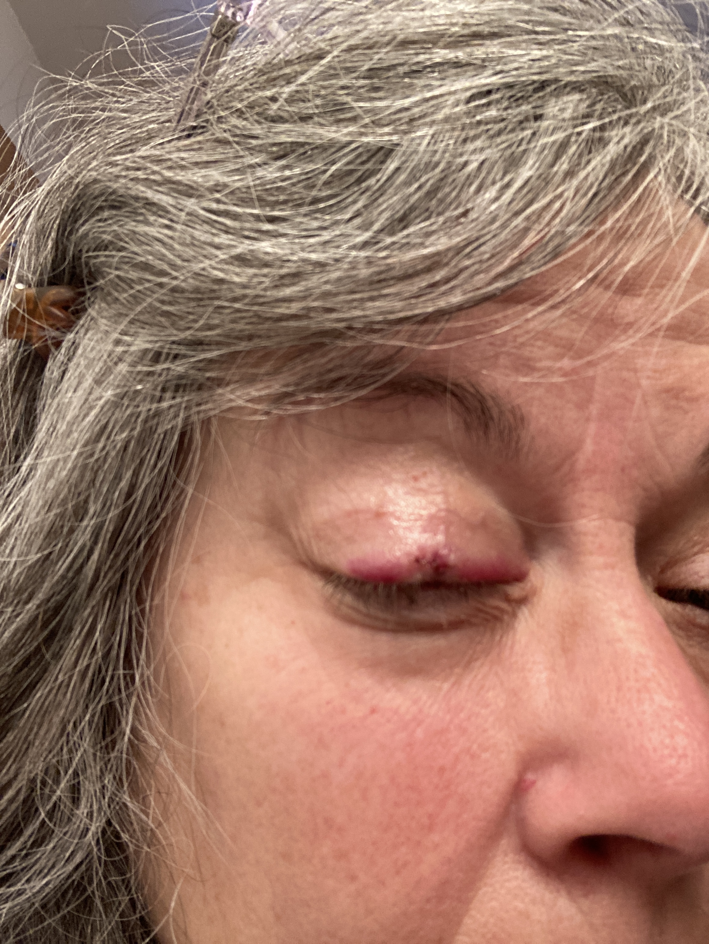 I haven’t shared with you that I had the red bump on my right eyelid removed a week and a half ago. It’s gotten larger over the years and, who knew!? We have an eyelid surgeon in Waterville, Maine. My eye doctor referred me to him and he’s surgically removed it. I think it was larger than he expected and he had to make two sutures. It’s never as simple as they say it’s going to be. So, day 1 and 2 it looked great. Day 3 I started to see red “bruising” around the edge of my eyelid. A week after the surgery black was added to the “pretty colors” and now it’s just a rainbow with some of the color collecting at the outside corner of my eye. BUT the bump is gone and the bruising will go away. It’s been an adventure waking up in the morning to see what color it would be. All kidding aside, I’m so grateful that it’s gone and there was no pain at all, and no infection. I hope you’re not squeamish because I’m going to share photos with you. Today the color is fading and maybe I’ll be back to “normal” for Christmas!