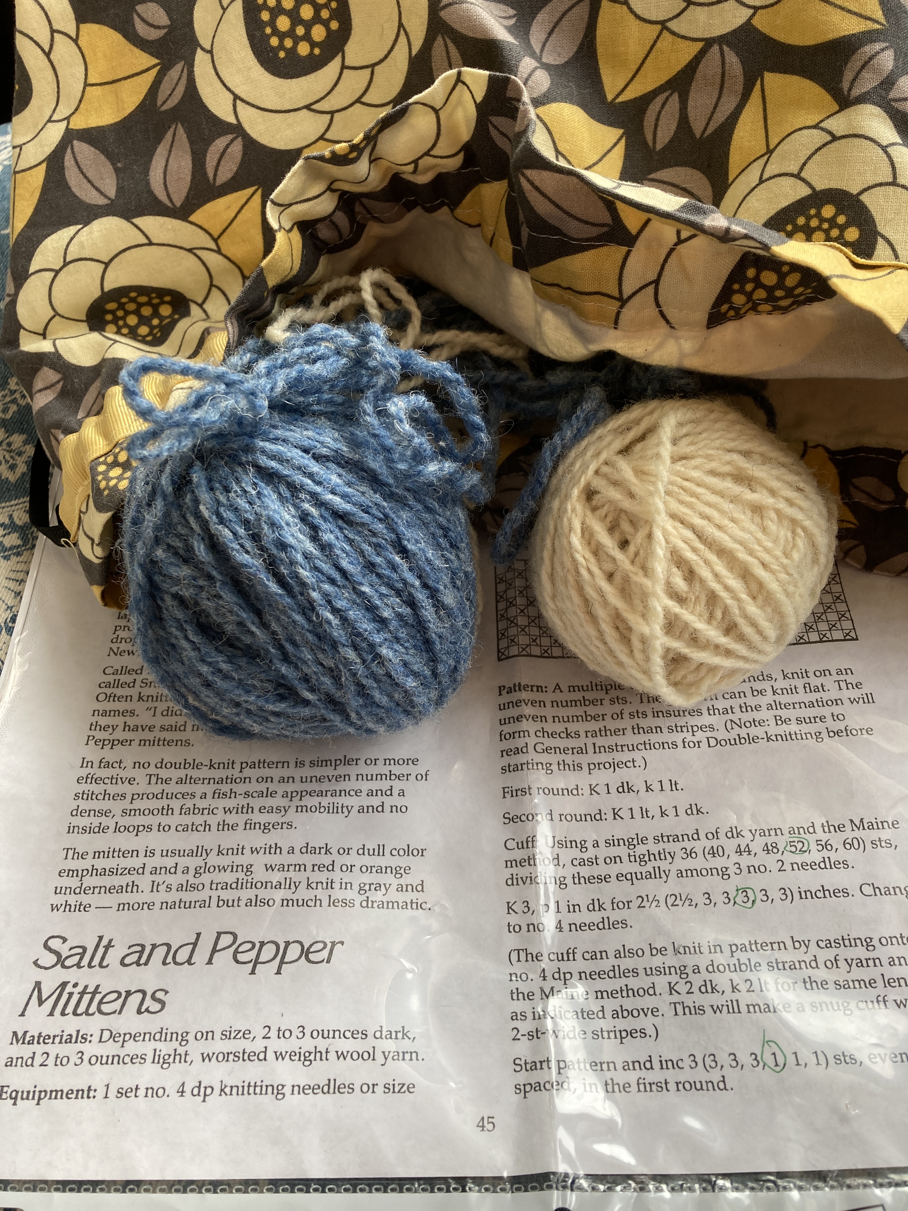 I gathered all of my WIPs (works in progress), my needles and notions that are spread around in bags and drawers in my studio, and brought them to one spot. I’m so lucky to have a studio space where I can do this! (Gratitude.) I then proceeded to examine each project to see if it’s something that I still want to knit, made sure that the yarn and pattern are in the bag of projects I want to keep and put them away in my cabinet. I also rescued yarn for the projects I don’t want to knit, returned it to a cake/skein and put any needles and notions away. I put finished project contents and bags away (I have bins of partial skeins saved away for those “just in case” times and I do return to them frequently) and made sure the project bags were clean before I put them away, too.