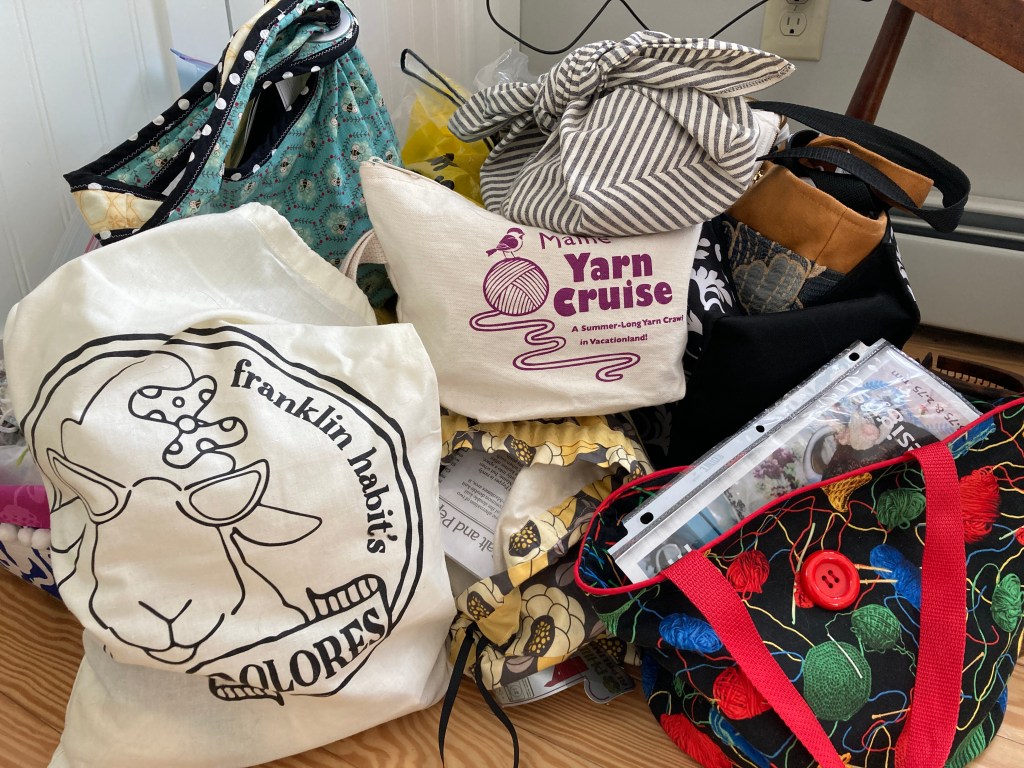I bought very little. I got a souvenir tote bag and a queen bee project bag. I know, no yarn? No yarn. I wasn’t feeling drawn by any particular yarn and truth be told, I have a lot of yarn already. I do have a plan to contact Adella at Lola Bean Yarn Company to buy a sweater’s worth of yarn. I’d love to knit something with Bare Naked Wools and I loved several of their samples. We saw a great poncho at WEBS and I’ll be knitting that in the future, too. So I was very inspired.