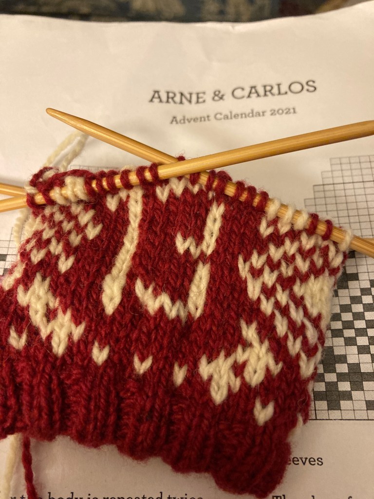 All of that is just the long way around saying that I’ve finished my Lane’s Island Pullover by Lori Versaci. AND … I love it! In fact, I wore it today because it was a bit cool this morning when I was heading off to work. I love the weight of Remix Light and I love the style of the sweater. Today’s outfit wasn’t much different from the day I modeled it for my husband and he took this photo …