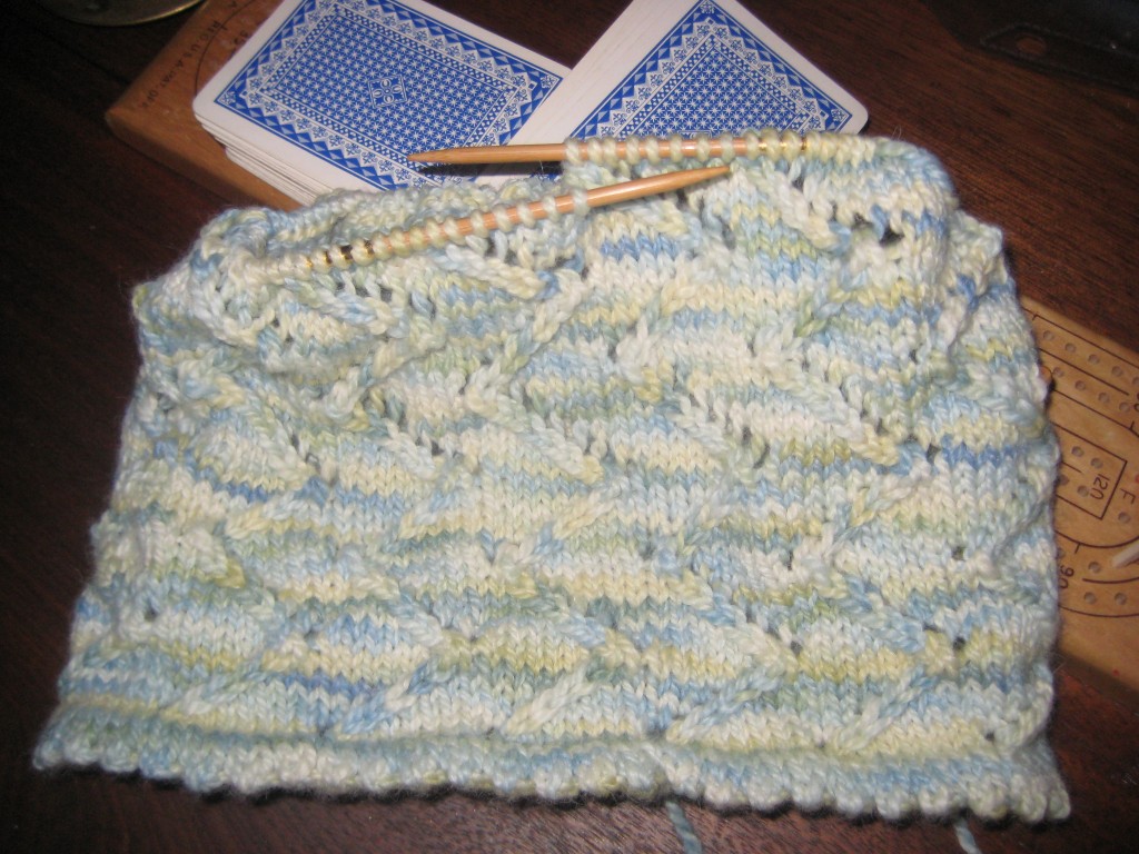 That’s my update for today. I was so impressed with the blocked stocking that I had to sit down and write about it “right now” before I got onto another tangent … and I’ve sewn in my two sleeves, sewed up the pockets, woven in a lot of the ends and now I am going to go seam the sleeves and sides of my pink Lane’s Island pullover … with any luck I can wear it to work on Friday or Saturday because I’ll have to block it, right?