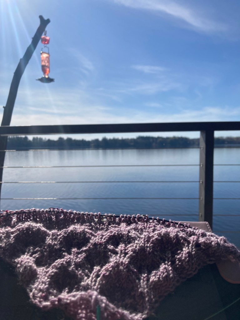 I’ve been rolling along on my Stashbuster Shawl. I’m nearing the end of the project and have taken a bit of time to count my stitches and estimate how much yarn I will need for casting off. I typically give myself three times the width of the edge to be cast off. I made a knot there and I’ll knit up to that knot or very close to it and then bind off with my fingers and toes crossed and my legs, too, maybe. When I bought this yarn I thought it was in shades of gray. Turns out that it’s navy blule. It’s all good, I wear a lot of blue and this one is slightly larger than the multi-colored Stashbuster that I knitted a while back. I think it’s going to be a good addition to my shawl collection.