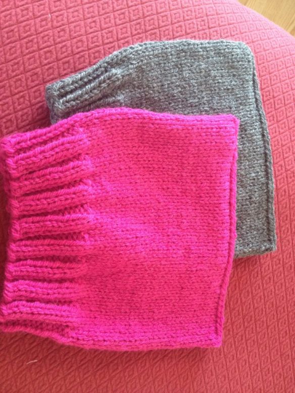 Two Pussy Cat hats or Kit Kat hats. One is bright pink for those days when I feel like taking a stand and the other is grey for those days when I want to stand firm but not bring attention to myself. I like they way these worked out. I used Plymouth Yarns Encore Chunky yarn for both hats. Normally, I’d rather knit with natural fibers but these hats are soft and chunky and they knit up super quickly. I also can wash and dry them in my machine. I sent my original hat that I knit in Malabrigo Rios worsted yarn to my future son-in-law. He wanted a hat and I was happy to send mine and knit another for myself.