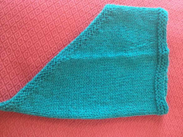 A cowl for a customer. I have a customer who loves my knitted accessories. I’ve knitted her three or four tams in different weights and now a cabled cowl. The latest is a Bandana Cowl from Purl Soho which is a free pattern on Revelry or the Purl Soho website. She didn’t understand that the picture of the cabled cowl wasn’t really how a cowl worked. She was wanting a “dickey” that will sit down on her chest and around her neck rather than a cowl that solely goes around the neck. I’ve finished this one is Cascade 128 Superwash in a lovely teal colorway. It will match the hat that I just made her. She still wants another pair of hats. One in a yellow Cascade 128 and another in a Noro yarn.
