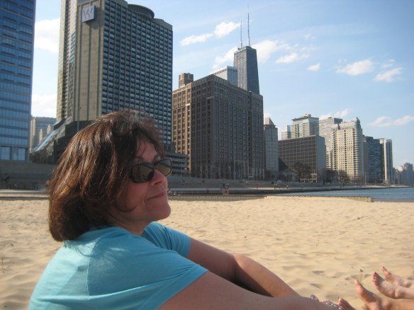 We did a ton of walking and eating and talking and walking and eating. We may have had a couple of glasses of wine or a martini or two. Saw the Marilyn statue on Michigan Avenue on the way to the urgent care clinic. Went to the beach and buried Mabel – my grand-dog – in the sand. Shopped at Target and Whole Foods. Threw away a couple of organic mangoes two days later. (Boo!) Drank tea, coffee, water, rode busses and the “el”, walked and ate some more.