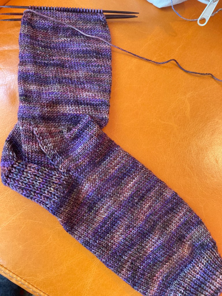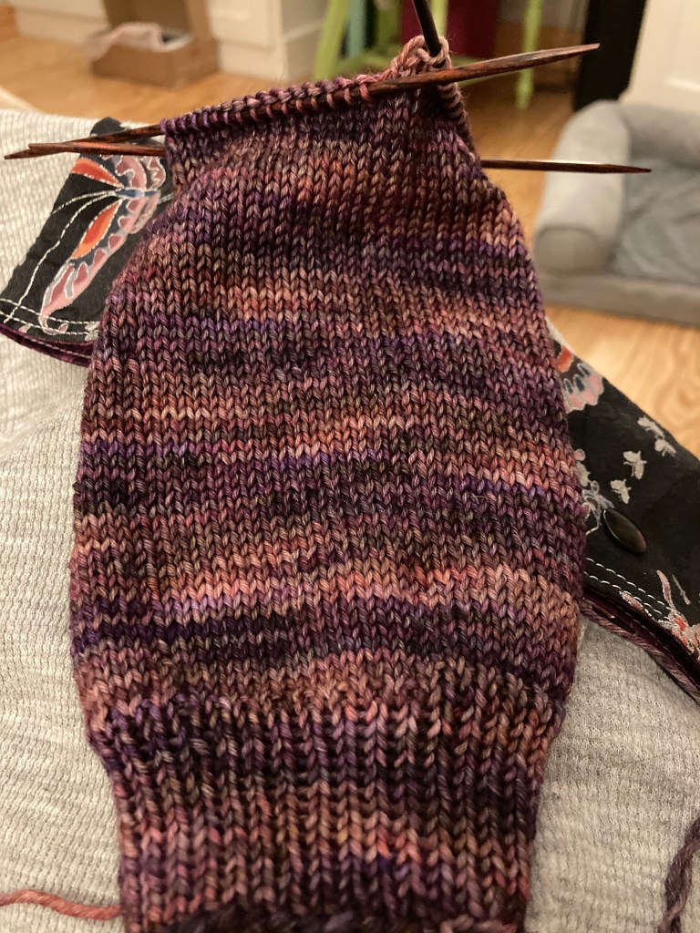 On my needles: a new pair of socks using another deeply stashed sock yarn by Socks Yeah! by CoopKnits In a peachy colorway. I am using Hermione’s Everyday Socks pattern by Erica Lueder which is a free pattern on Ravelry. It’s a simple 4-round repeat pattern and I find it seriously potato-chippy. I can’t seem to stop knitting them. I love the yarn. LOVE it! I originally got this yarn with a collection from the UK from Arnall-Culliford Knitwear for a series of lessons called A Year of Techniques (which went on for three years with three different books, all different yarns and patterns. It was wonderful!) If my memory serves, the peachy colorway was to have been one of three colors for a knitted animal. I didn’t want to knit the animal and so here we are.