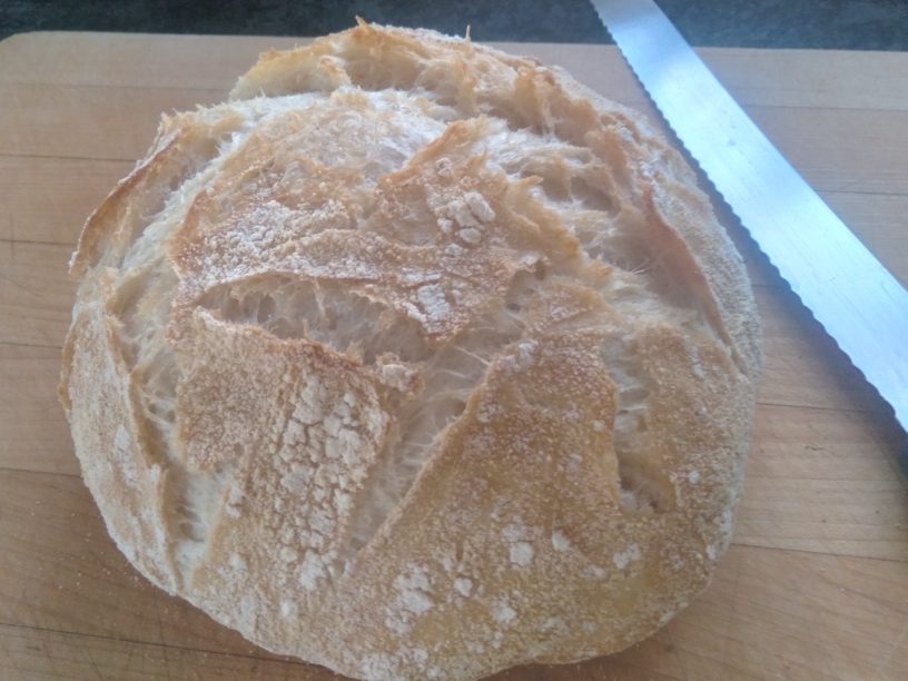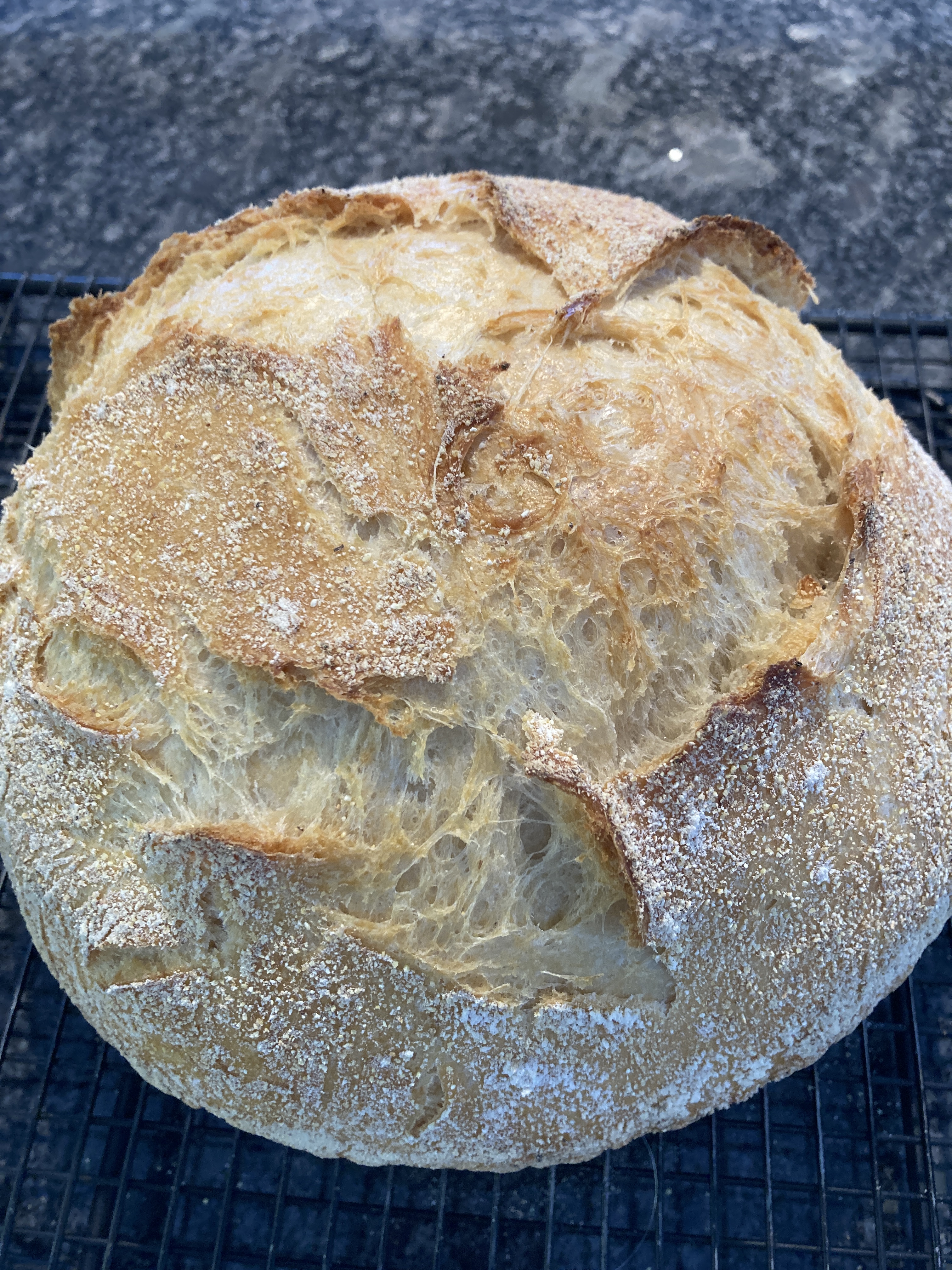 Today I’m changing up my first photograph. This is the second loaf of bread that I’ve baked since the New Year. The bread store that we’ve been enjoying for as long as we’ve lived here full time has closed. The city is building an affordable housing complex and will demolish the Universal Bread Bakers building. We have missed Adrian’s bread and had to figure something out to replace it and I decided to try the NY Times “No-Knead Bread” recipe. It’s simple ingredients and quick to mix but it takes a lot of time to let it do its thing until you can bake it: 12-18 hours of rising time, 2 hours and 15 minutes of resting and rising time after that and then you can bake it in 45 minutes. BUT it’s really good!