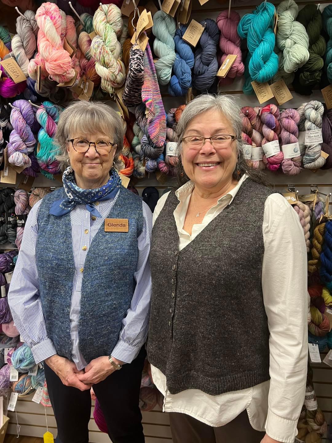 My friend and co-worker, Glenda, and I were twins at work last Friday. We both wore our Nancy’s Vest that we knitted together in a self-proclaimed KAL. We both loved the pattern because it taught us a few new techniques without being too difficult and we love the Manos of Uruguay Milo yarn.