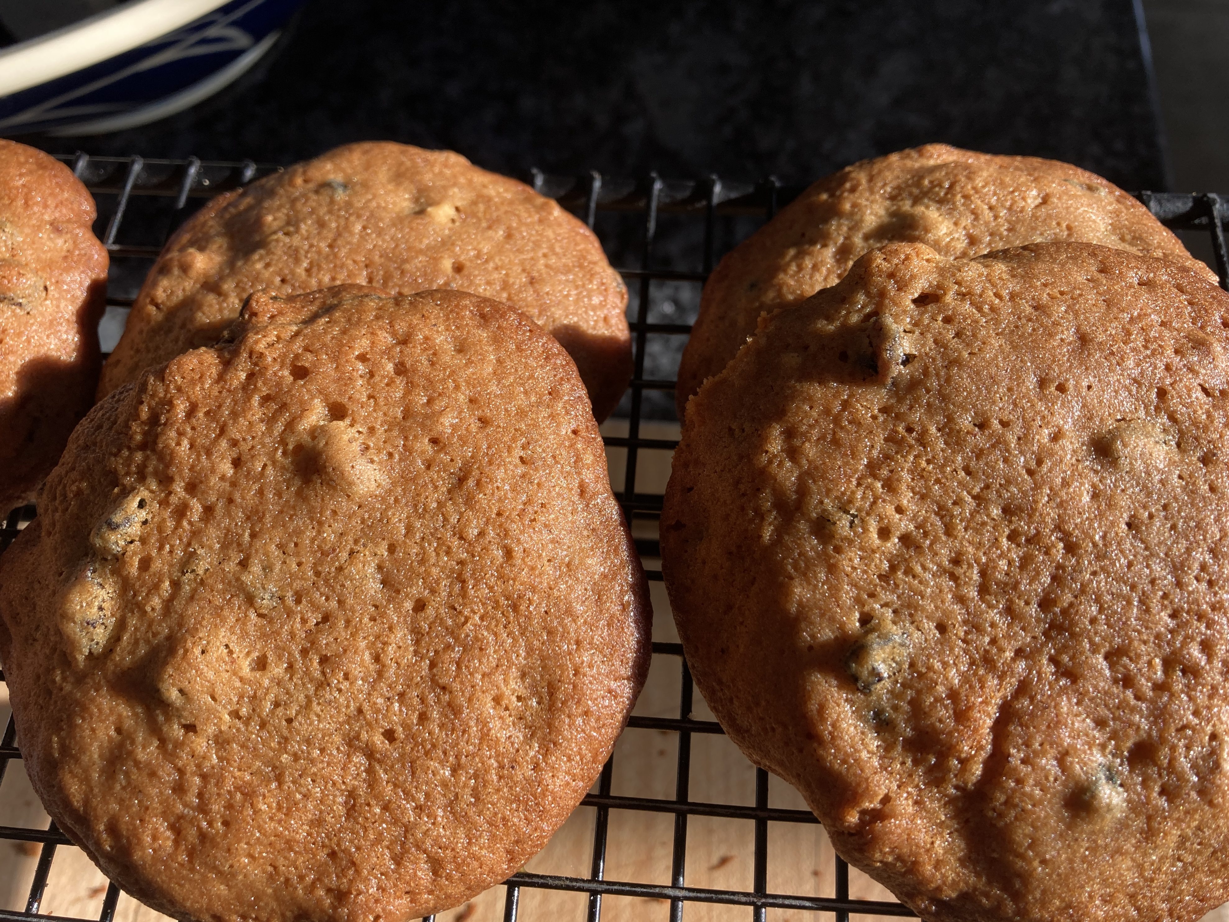 I also baked Hermits today (while I was waiting for the bread to complete its second rise. The recipe is a really old one and I love having it and using it. It came from my paternal grandmother’s recipe box which I have since passed on to my cousin. Granny Rockwell was a Cordon Bleu- trained cook. I’m not sure how she did that but her family was privileged even way back when. Granny was born in the late 1800s and was a student at Smith College in 1911 when her father took her on a “world tour”. I assume that’s when she took classes in France, but I’m not sure. A side note: when she died and we were cleaning out her house, we found a mint green satin cape from Paris in the attic. What I would give to have that today. I also found a drawer full of glass eyes. I never knew she had one and still don’t know how she lost her eye.