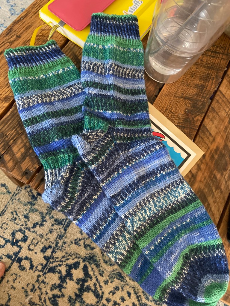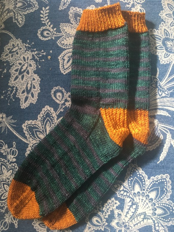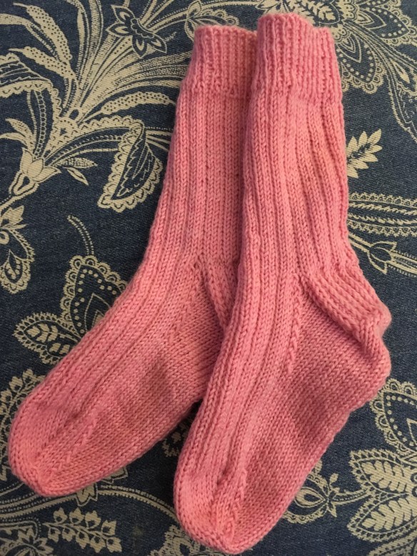 They’re plain vanilla socks, my favorite Yankee Knitter pattern. I’ve bought the pattern several times and keep going back for more. I’ve now bought the pattern electronically and I hope I don’t shred that pattern, too.