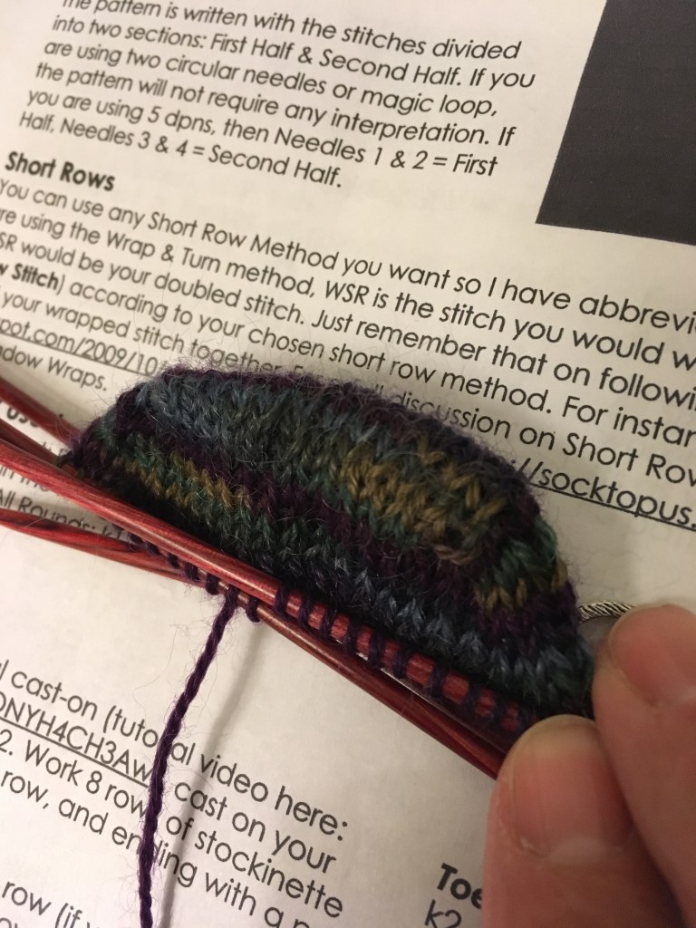 I’ve cast on the Evolve Cowl by Hunter Hammersen which is the second project in the Confident Knitting program from Arnall-Culliford Knitwear. The yarn is Dusty Dimples DK, this is a hand-dyed yarn from the UK and it’s really delightful to knit with. The yarn was purchased as a kit to go with the book (for now virtual) that includes a lot of technique tutorials. This is the third such program that I’ve purchased and I have yet to be sorry that I did. I have not finished all of the projects from the first two books; Some I probably won’t ever make and some I know that I will. When the time is right. The technique this month is blocking a cowl in the round so that it doesn’t have the horrible creases. Good to know.
