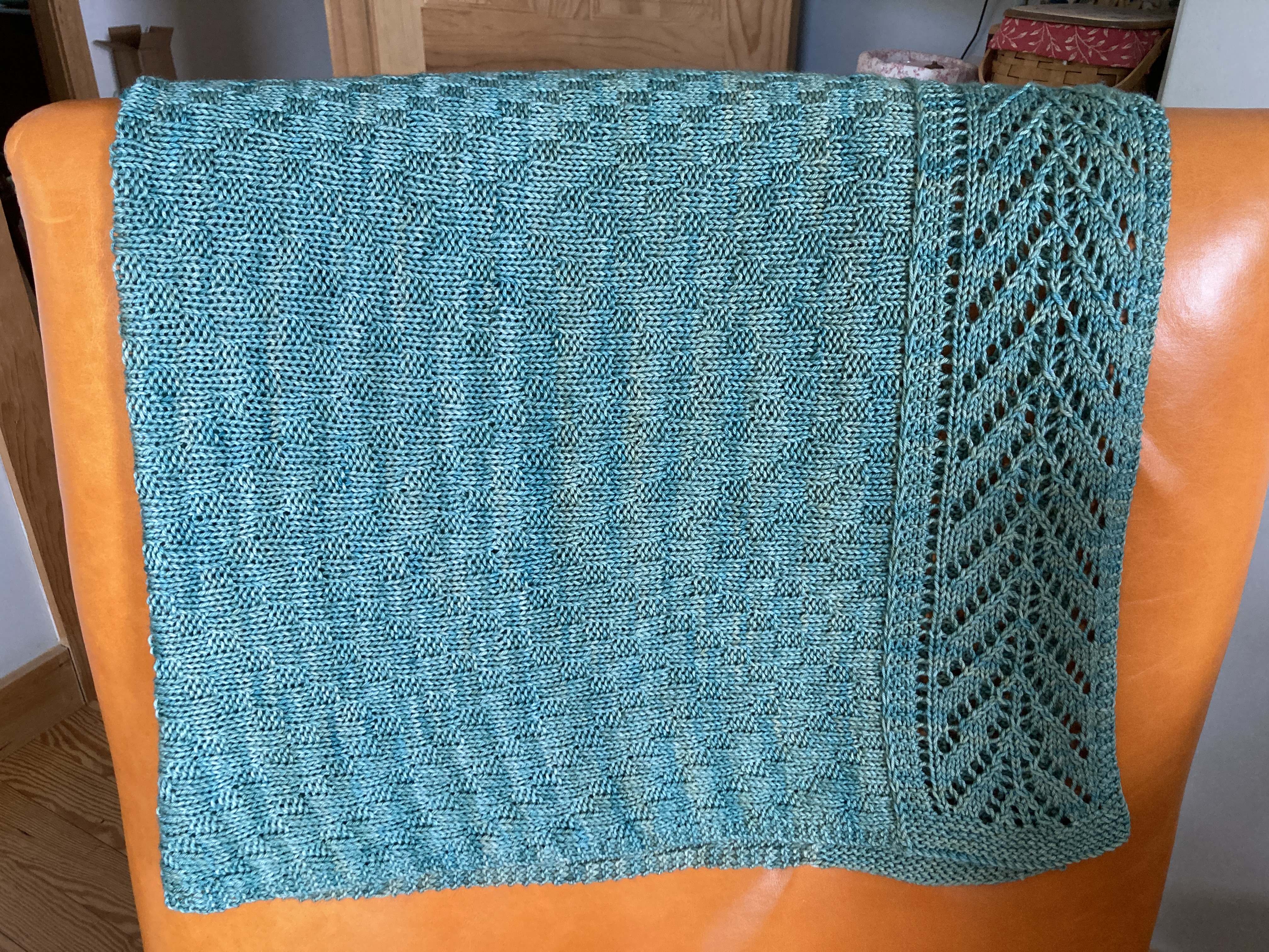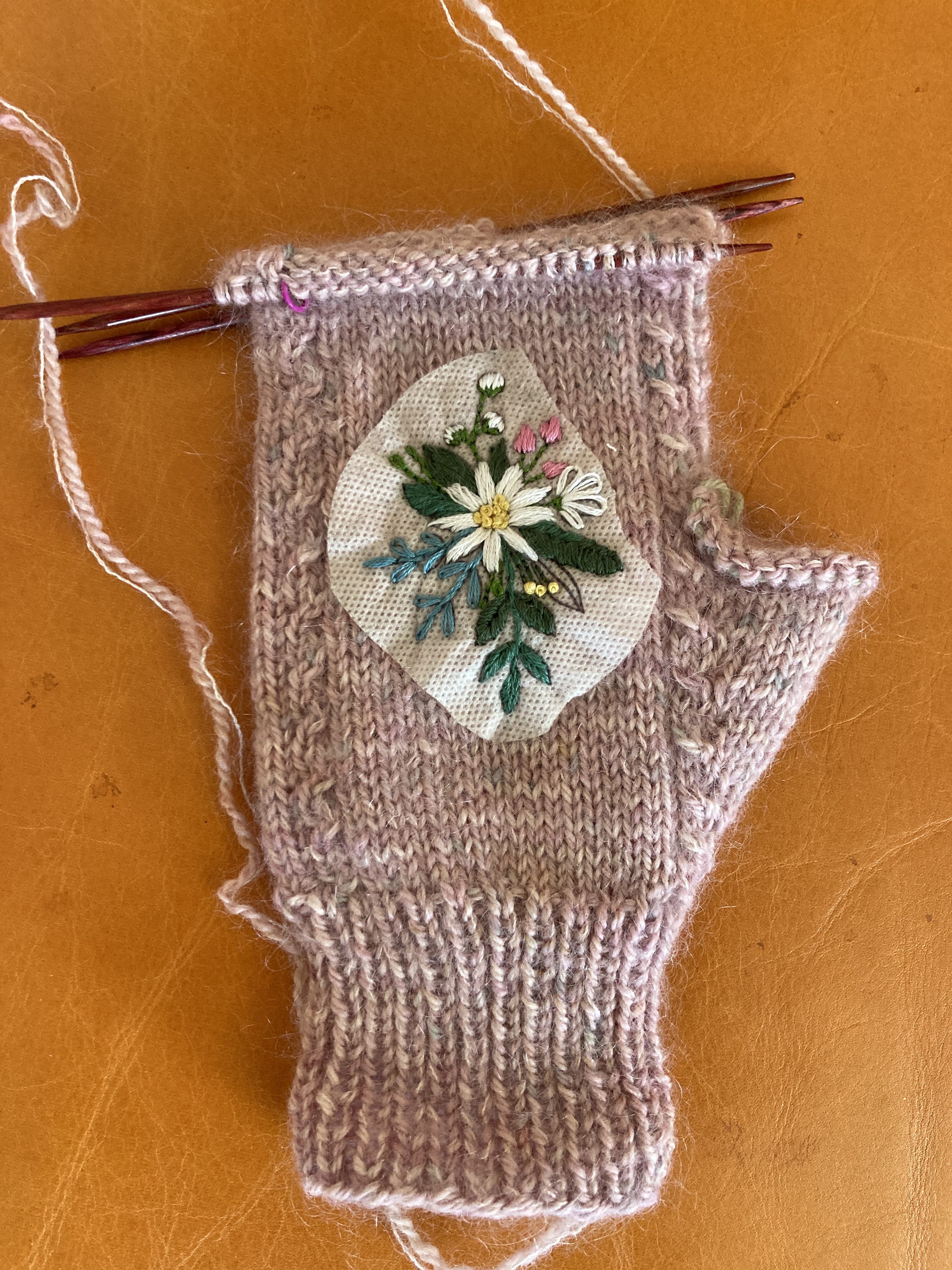 I also finished the Nuuk Gloves that are actually fingerless mitts. These are going to be nice warm mittens and they’re long enough to wear in the winter in Maine when the mornings are chilly and the car’s steering wheel is chilly. You need mitts to cover your fingers so they don’t touch the wheel at least until the heater warms is up. The yarn is Knitting for Olive’s merino worsted held with a Knitting for Olive mohair. They’re knitted at quite a tight gauge which will make them extra warm. I bought this yarn on a “girls’ trip” with my coworker friends to a new LYS near us here in Central Maine. I like that it’s not a superwash. There, I’ve said it. I’m becoming a wooly wool kind of girl.