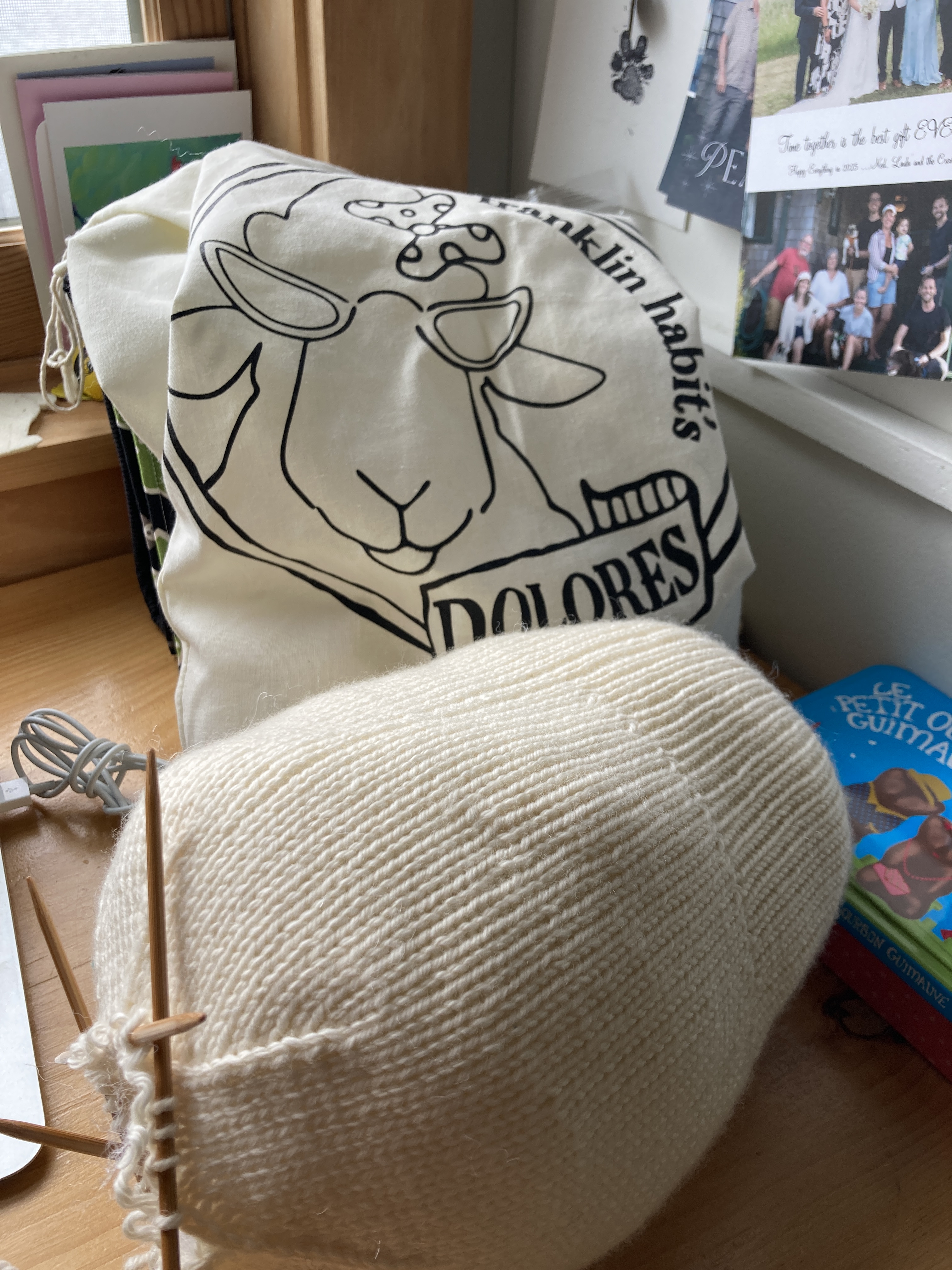 I have mostly finished our granddaughter’s Christmas gift sweater, the Jamberry Cardigan. All the duplicate stitch is done, most of the ends are woven in and I just have to sew on the buttons and give it a block. I’m quite pleased with the sweater and I know Sylvie will love it. This completes her little gifts. I’ll post a final picture when it’s actually finished. But the “hard” work is done.