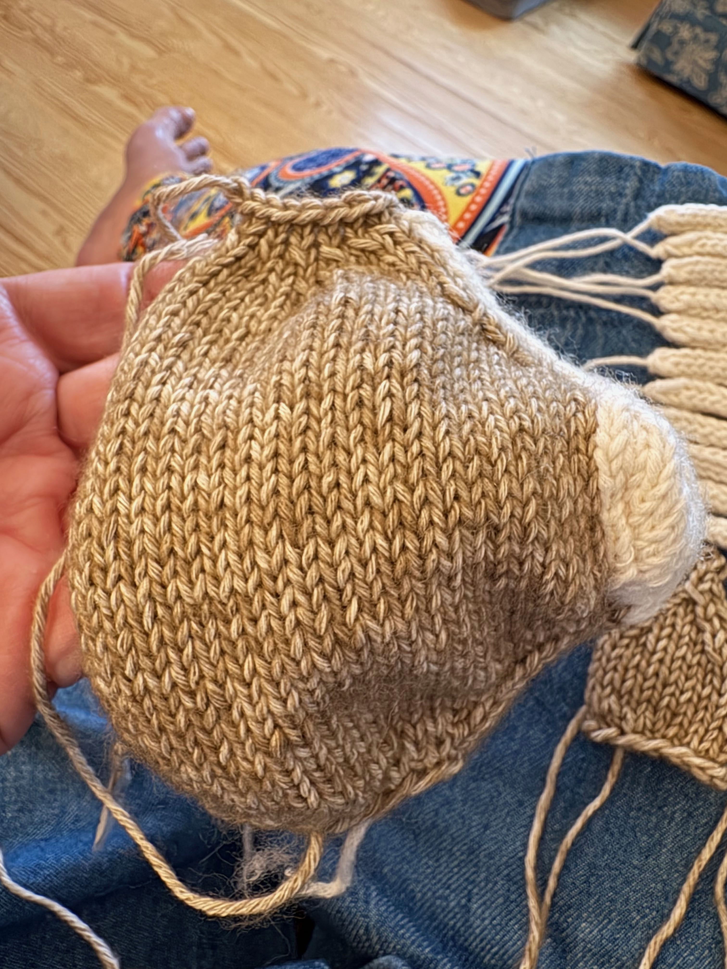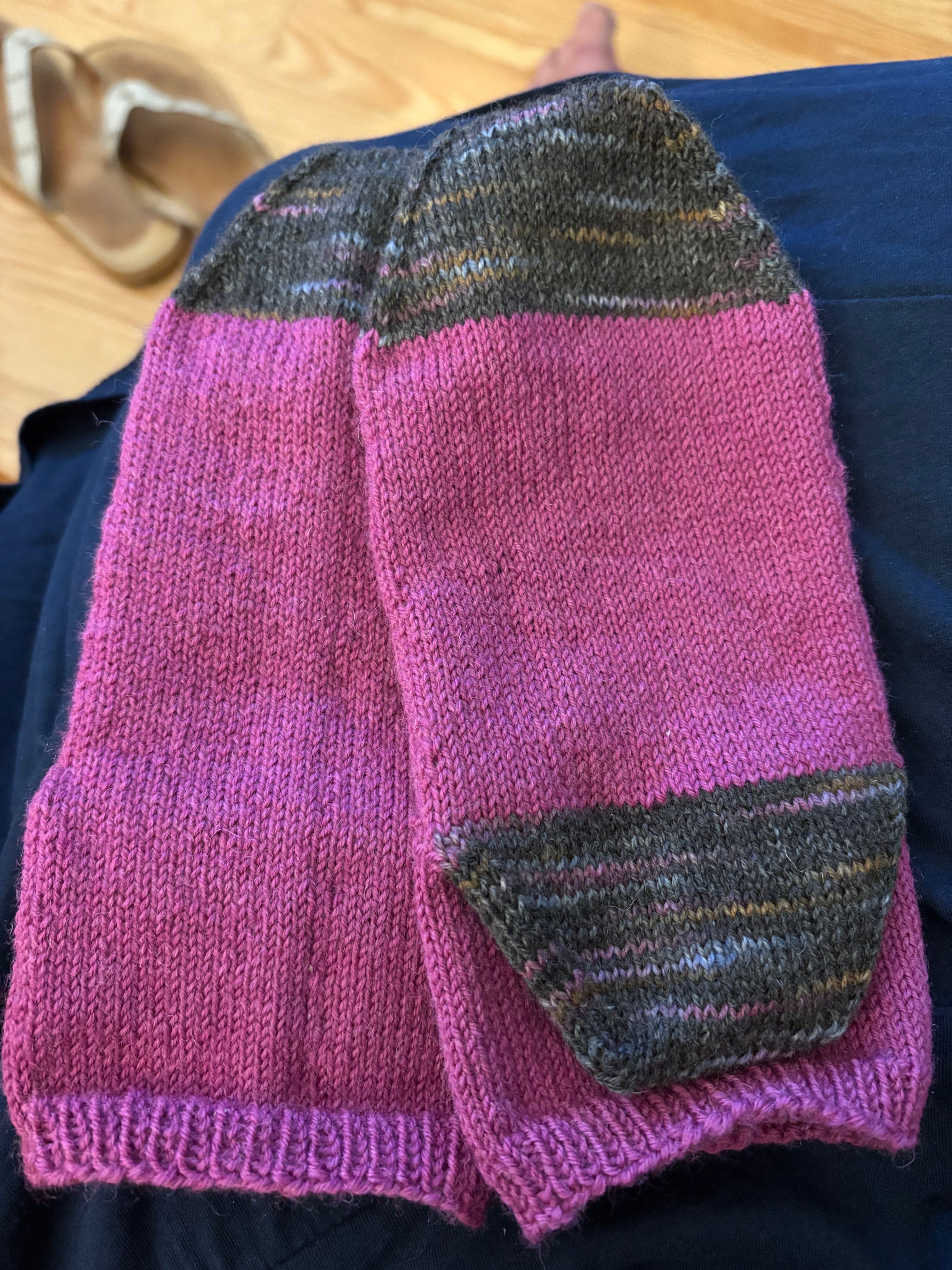 I love the yarn and hope it’ll hold up to washing and drying. AND he’s growing so fast, they’ll likely be too small before they’re worn out. The yarn is next-to-skin soft and I love the color, too. I just have to block them and trim the ends that are all woven in.