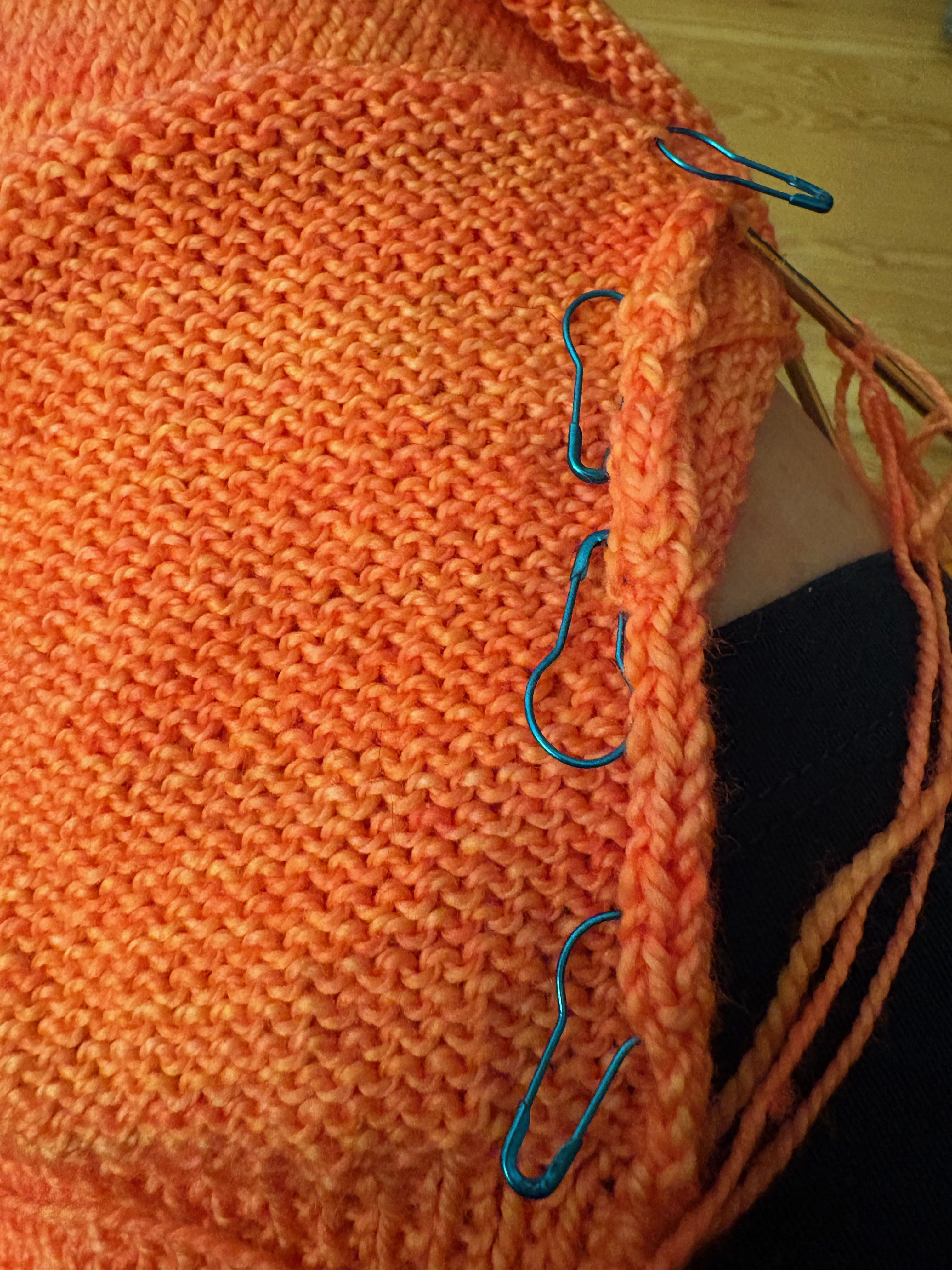 Meanwhile, I have done some knitting and made a little progress (and cast on a new project, too.) The first thing I did was finish the Billie pants for my grandson. I made these in a really nice shade of green that my bonus daughter picked out. The pants are adorable BUT I didn’t think well and need one more ball to make the sweater to match. I’ll order one ball today and can still get the wee sweater knitted in good time.