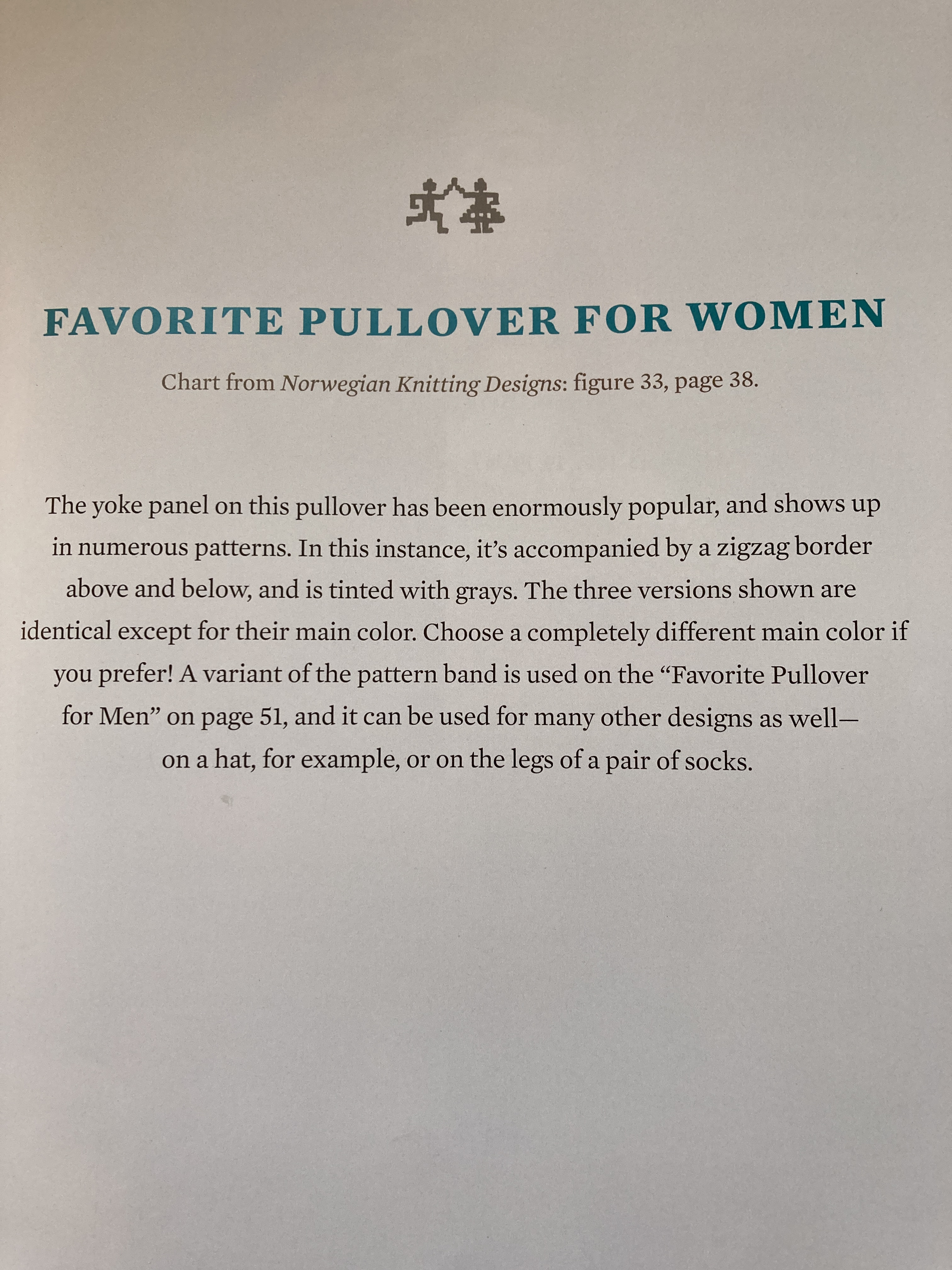 I started on this journey by taking a class with Knitography Farm. The first class turned into a couple more classes and culminated in knitting this sweater. I had to purchase the book Norwegian Knitting Designs 90 Years Later on Amazon to get the pattern as it appears it’s nowhere else. This book is a coffee table book of traditional Norwegian knitwear designs. The original book is in a pocket at the back of my book. (Since I have some leftover yarn, I’ll likely find another small project to knit up with the yarn.) I loved the Favorite Pullover for Women immediately and knew this was the “genser” I wanted to make.