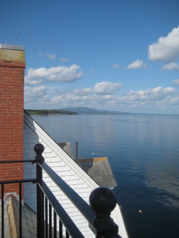 The Rockland Breakwater Lighthouse is going through a major renovation and it’s going to be a beautiful place to visit. Well, it was a beautiful place to visit and I could imagine living there as the keeper (all lighthouses in Maine today are automated.) While I think the volunteers could have designed a more professional display of the history of the lighthouse, it’s a fun visit and it’s a treat to see the keeper’s house as well as visit the tower. My camera died so I can’t share with you the views other than the two I took. One above is toward the shore over the breakwater (wear sturdy shoes for this hike) and another looking toward the Owl’s Head light across the harbor.