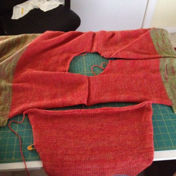 There is nothing worse that sitting under the pieces of a wool sweater when the temperatures are in the 80s here in Maine. We don’t have any air conditioning at our house. Normally we only need it a couple of days a year. And our nights are always cool enough to put a sheet and a blanket over us. But I’m not going to work on the seaming of the cardigan until it’s a little bit cooler. So, I’ve cast on another new project that I’ve been waiting to knit. Drachenfels by Melanie Berg.