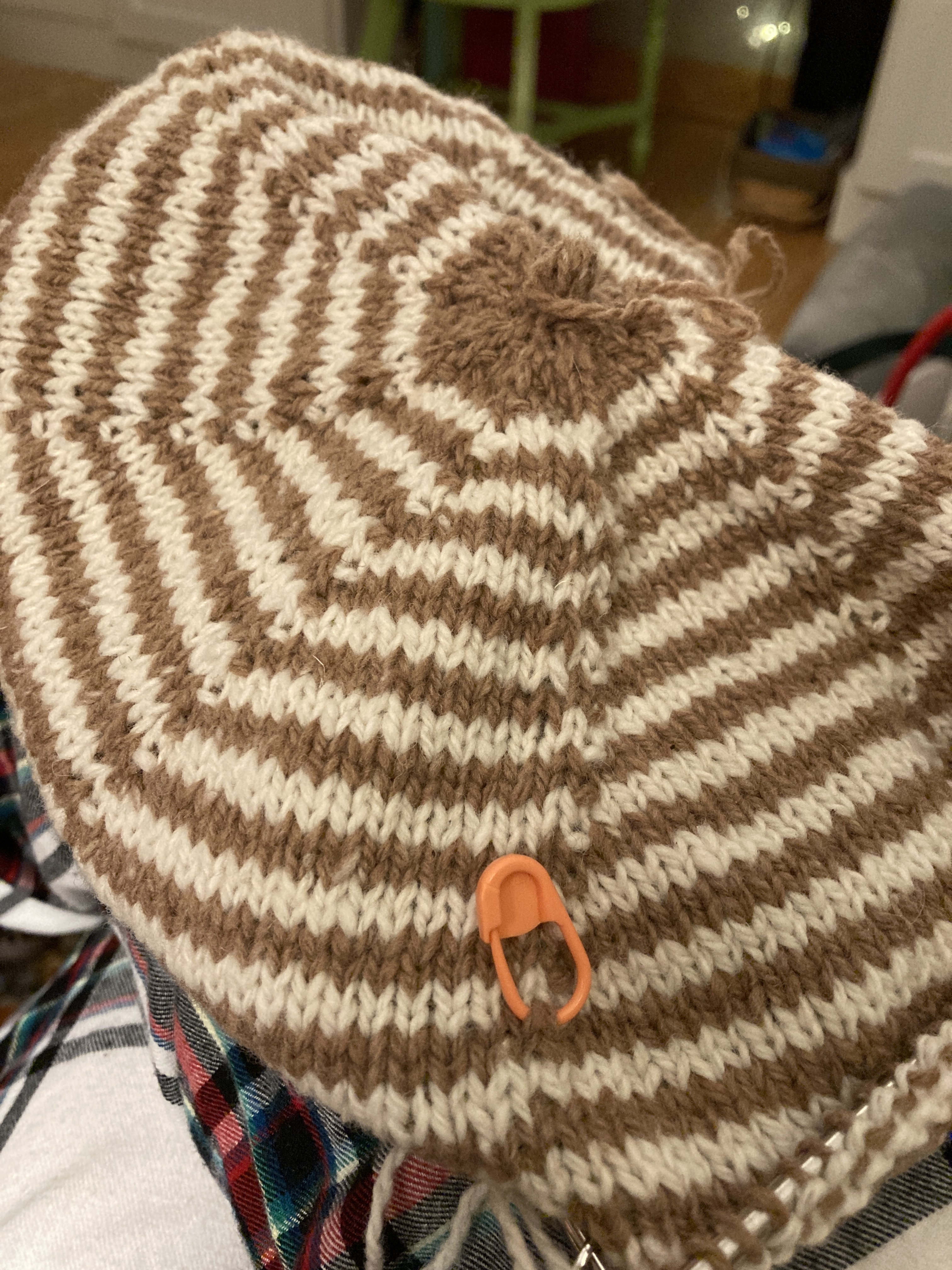 I’ve got to get better about photographing the hats at the end … I get excited and forget. Haha! Oh well. You can get the gist of what it looks like by this photo. I added a bit of an i-cord “string” or whatever that part of the tam/beret is called that sits at the top and then began the pattern. I am really pleased with both hats.