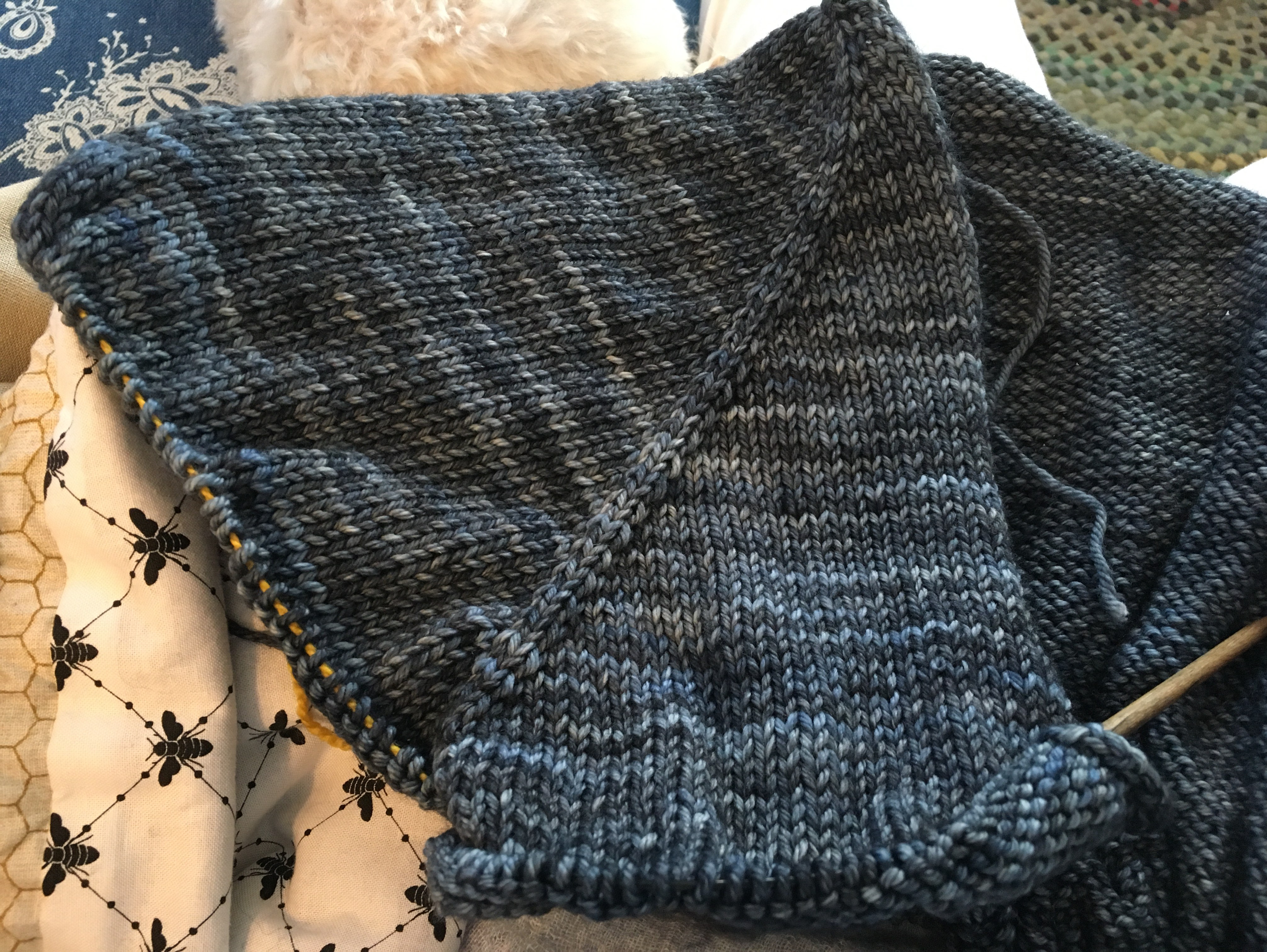 My Nancy Vest is getting there veeeeeery slowly. I’ve picked it up a couple of times when I didn’t want to think about my knitting. It is growing so slowly that I am a little bit concerned that I have enough yarn. That would be such a bummer. I have my Three Seasons Cardigan to pick up again after Christmas, my pink embroidered mittens, a couple of pairs of socks and there may be more.
