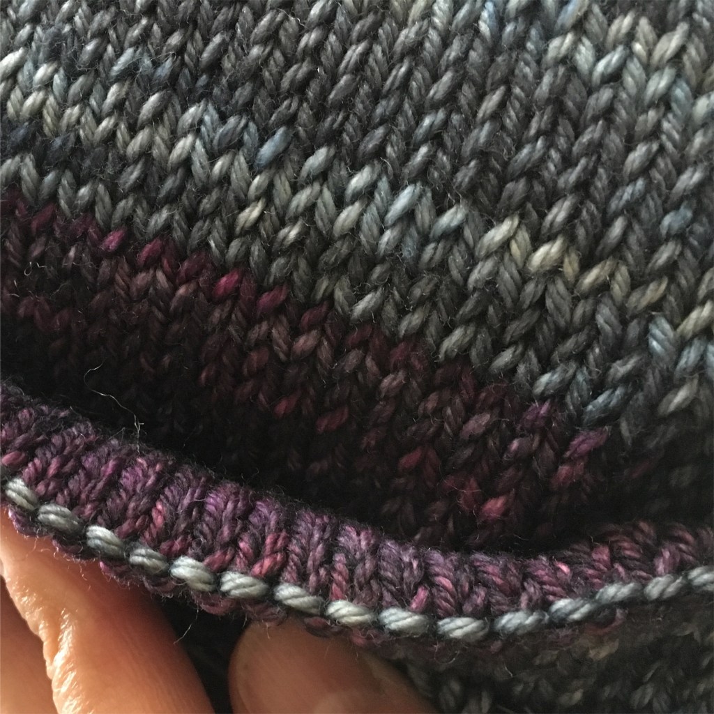 My second attempt will be a one-color hat in Malabrigo Arroyo. For this beret, I’ll be knitting BisBis Beret by Sari Nordlund. It’s another top-down beret pattern and it’s written for a fingering weight yarn held double with a lace weight mohair. I think that’s going to feel too wintery so I’m going for a simpler plain sport weight. I still have a week! More on this one to come soon.