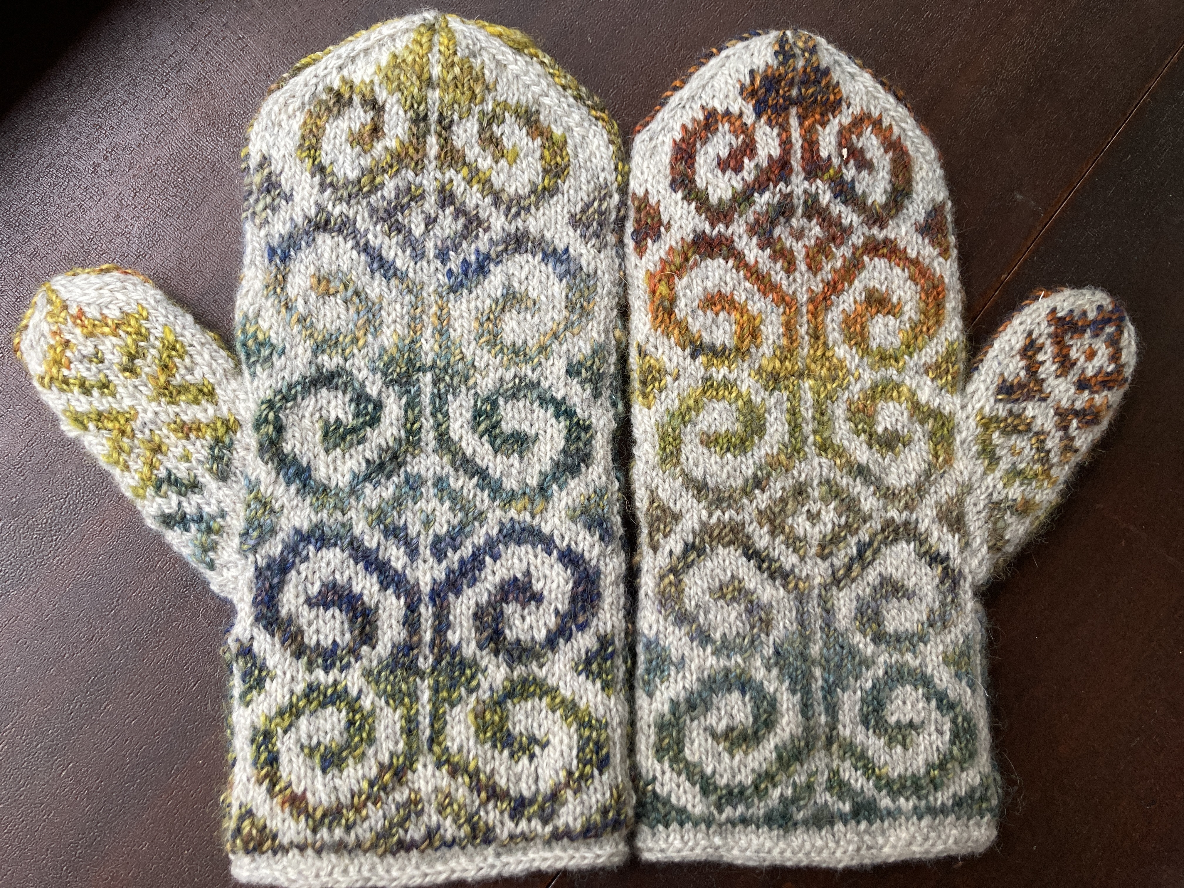 And once blocked, the stitches have evened out and they are simply stunning. I have knitted a lot of colorwork but I love these the most of any. The lining yarn is so soft (I hated knitting with it!) and the little bit of yak in it will make these mittens so warm and cozy.