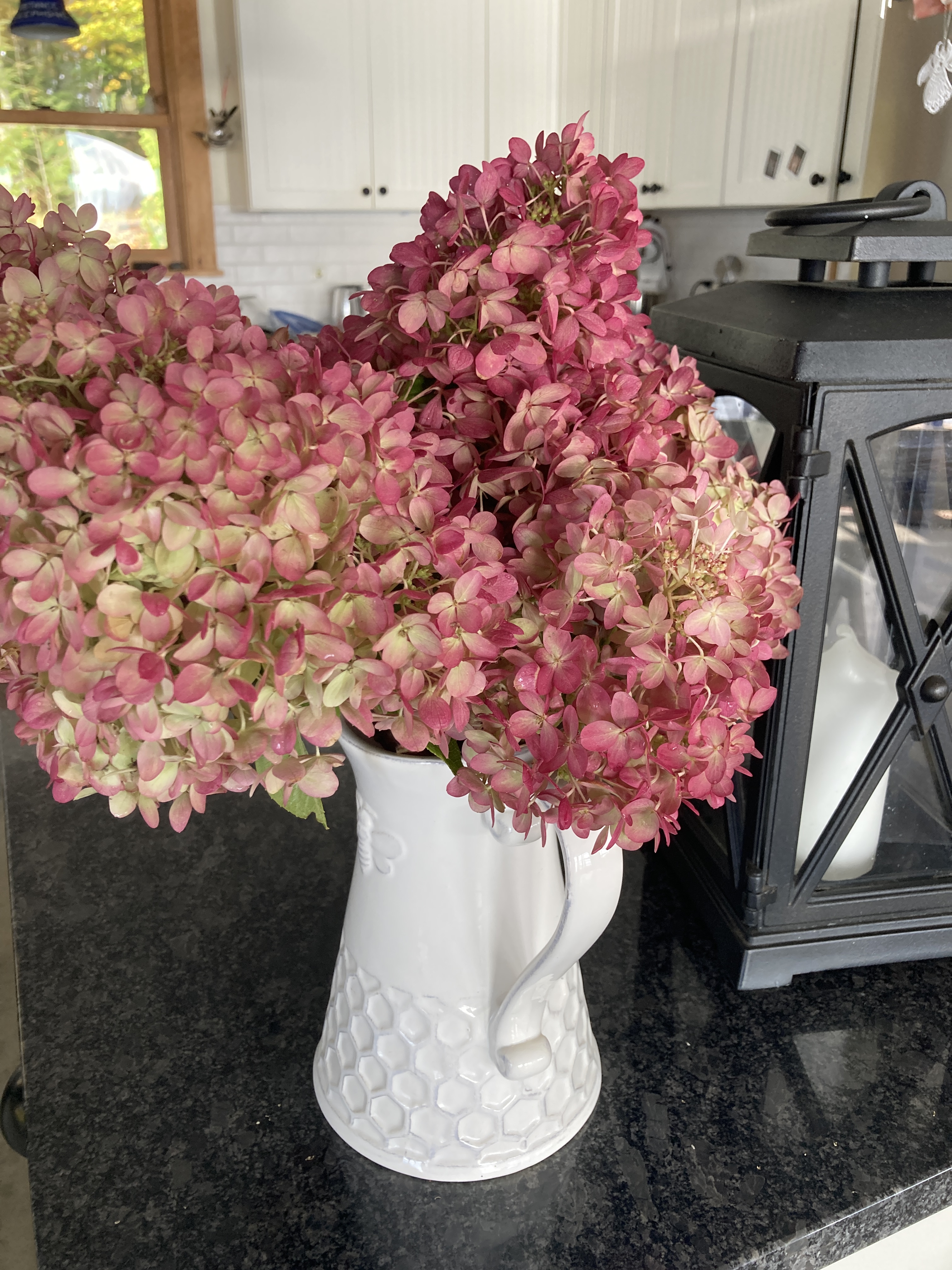 After my appointment I came home and made blueberry muffins for my sweetie. I’ve not been doing any baking for the last few months because I’ve been feeling somewhat overwhelmed by life and all of my obligations and he’s missed his sweets. I’ve missed feeling grounded and in retrospect, my lack of baking is some of what is making me feel overwhelmed. It’s a vicious cycle! Regardless, I’m going to try to take it back and bake once a week at least. While the muffins were baking I finished our laundry and cut some of the beautiful hydrangeas from one of the bushes in our yard. I am hoping that they will dry and be a pretty decoration through the winter.