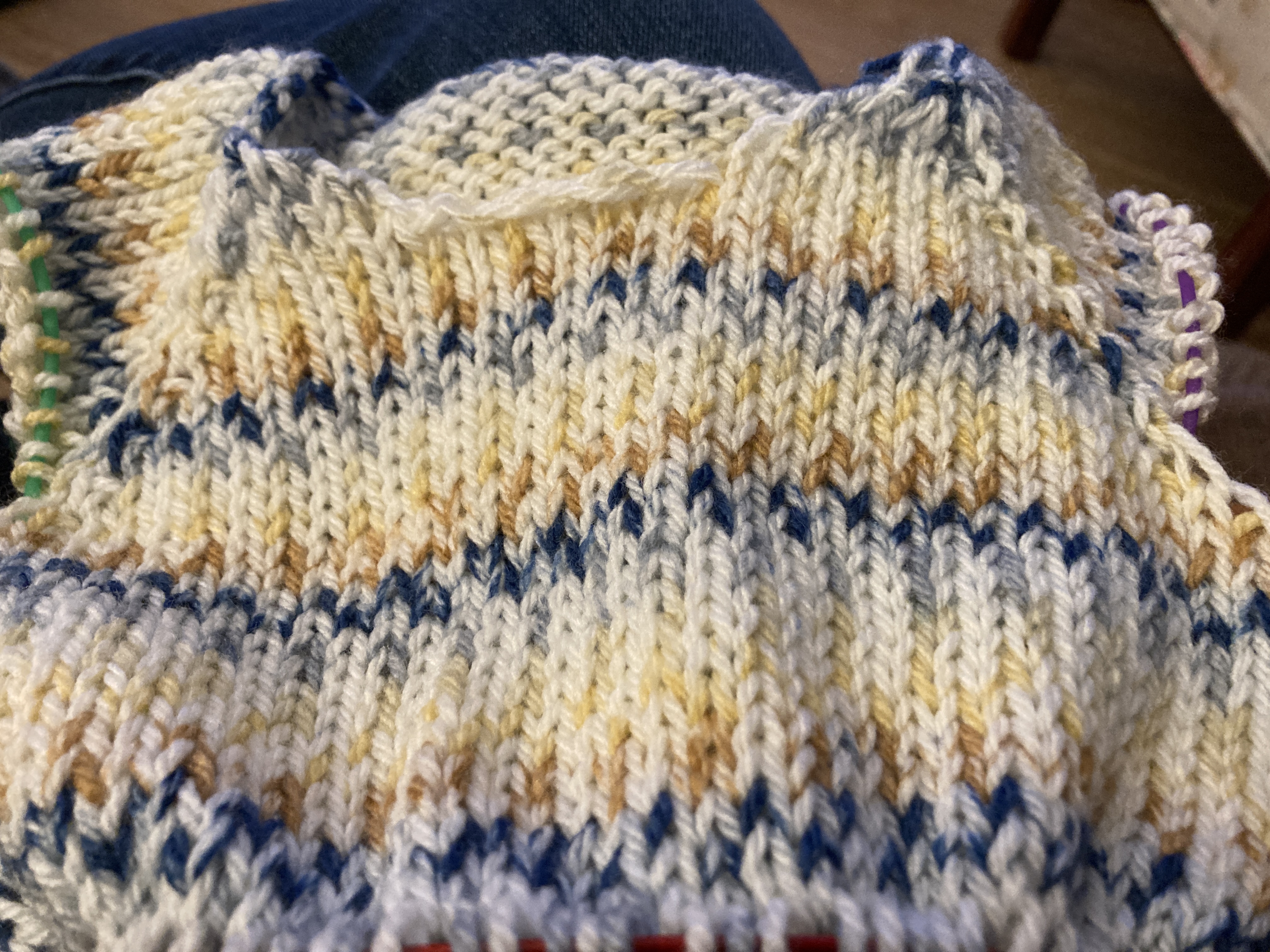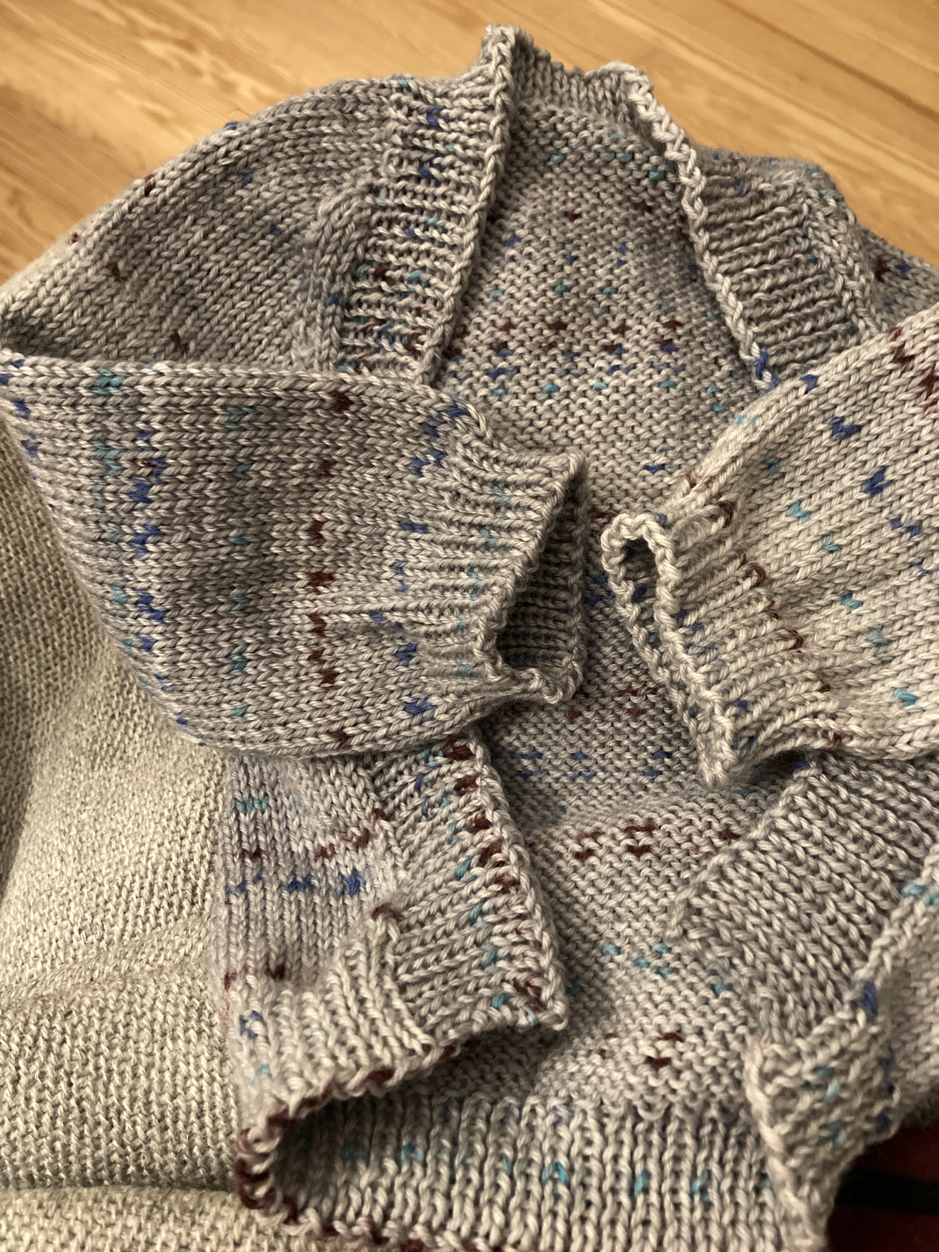 I cast on a little sweater for our newest grandchild (arrival late August.) We don’t know if they will be a boy or a girl and won’t know so I let Poppy choose the colorway and it’s gray with specks of color. A little Vertebrae cardigan for newborns. This baby will be living in the Denver, CO area and will be born in A/C season and will likely spend lots of time outdoors. We can’t wait to meet him/her!