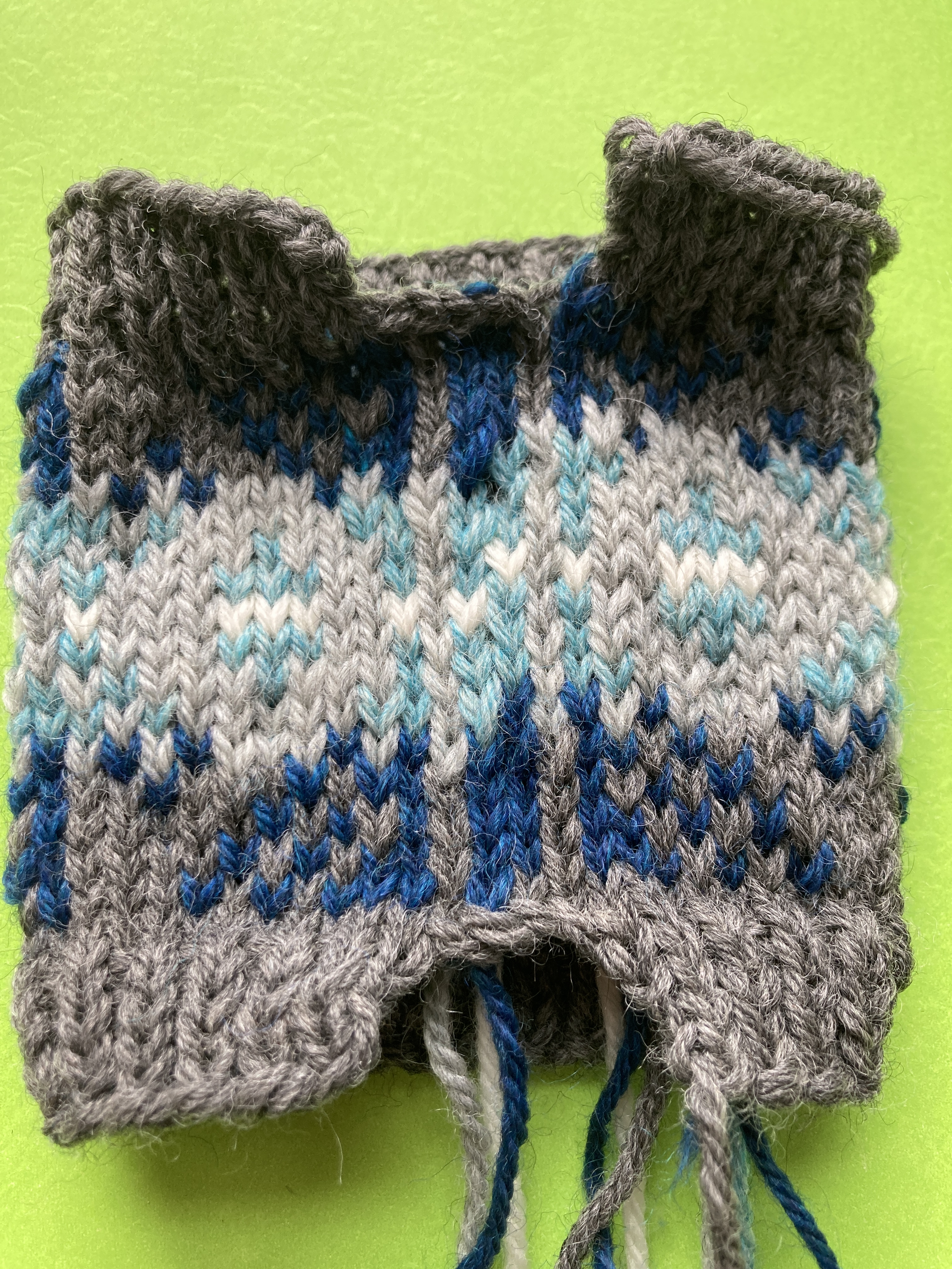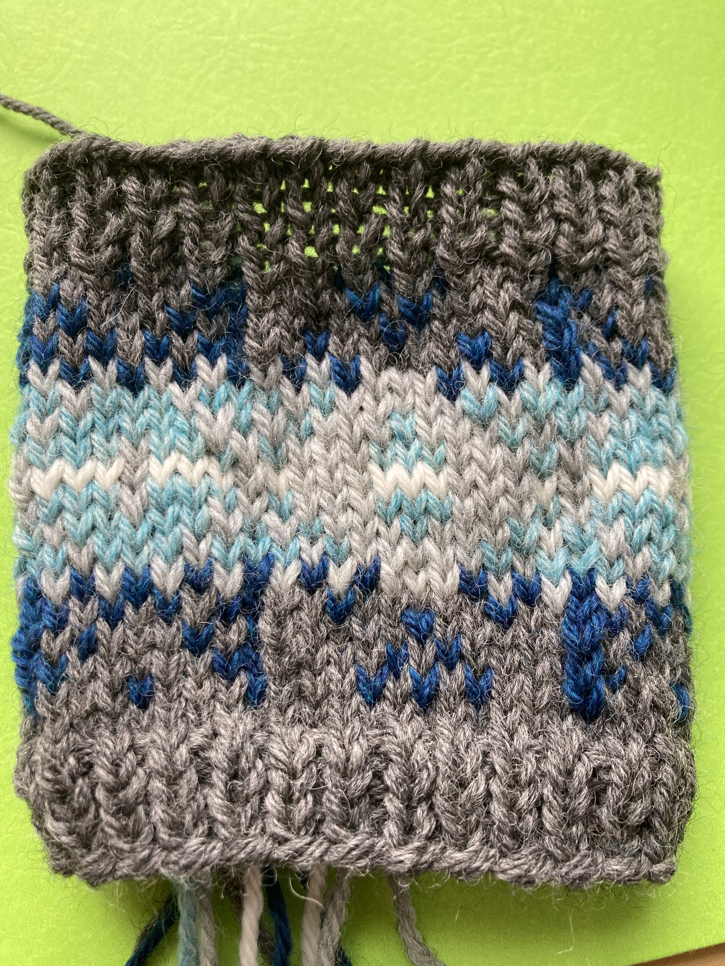 I still have the colorwork cowl that I started and didn’t get much past the start of the ribbing. I think I recall that I had to pull out the colorwork because I didn’t like the way the floats were looking behind the pink fabric. These colors may not work for this project but it’s all good – there will be another project if this one doesn’t work.