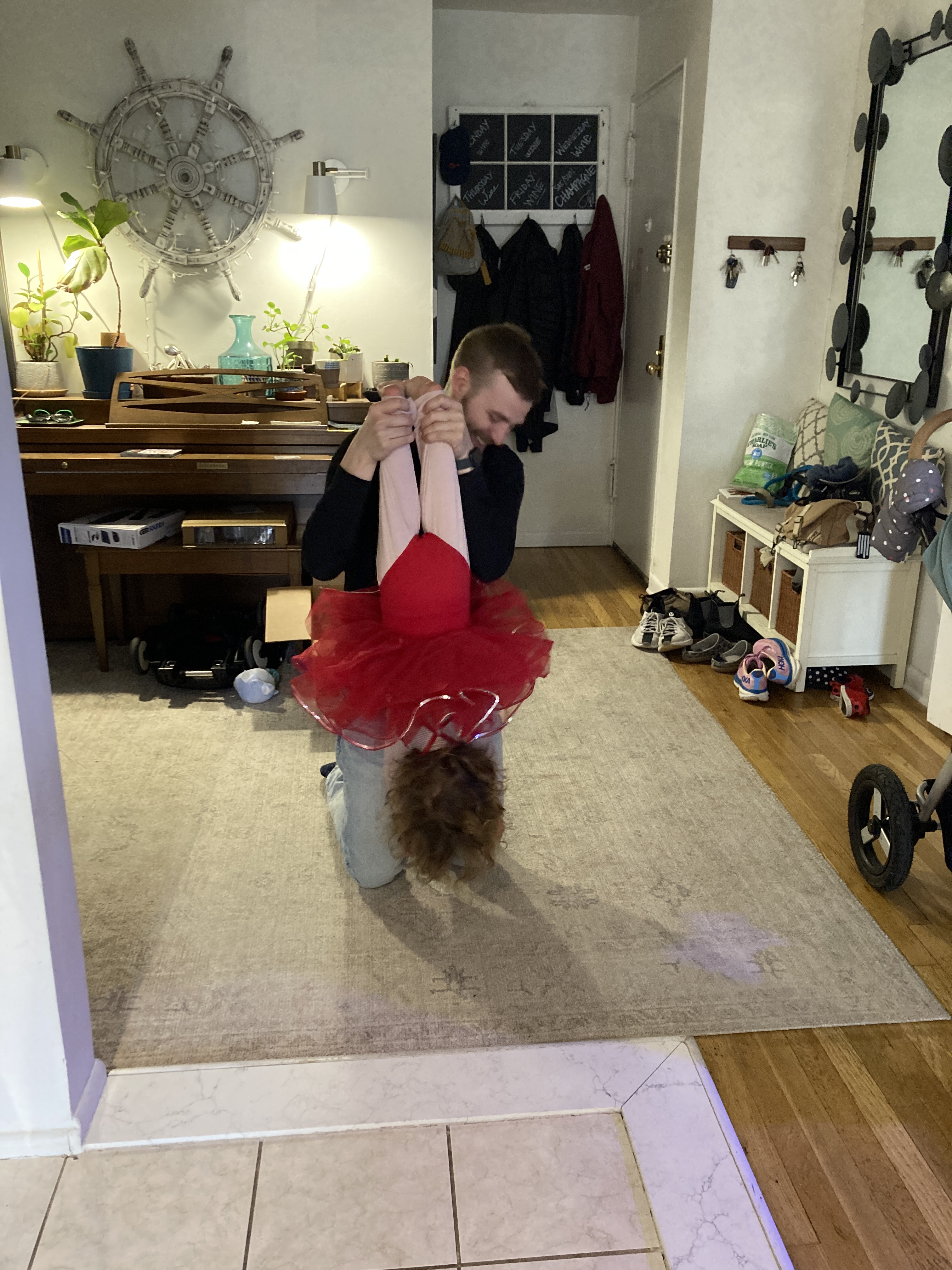 My eldest daughter, mom to our grand, is in San Diego opening a new play called Regency Girls and her husband had to be in Las Vegas for a work event so we were called to spend a week with our granddaughter. We have learned we walk more and move way more when we’re in New York with a two-year-old. Ha! Ha! And we did. We went to the playground, played in their courtyard, made lots of lego buildings and stacked blocks (and knocked them down). Read books, colored with Dot markers (they are very satisfying) and generally had a blast. We made challah one day and Sylvie was a big helper, mixing, punching down, helping to roll and braid the dough, and brushing on the egg wash