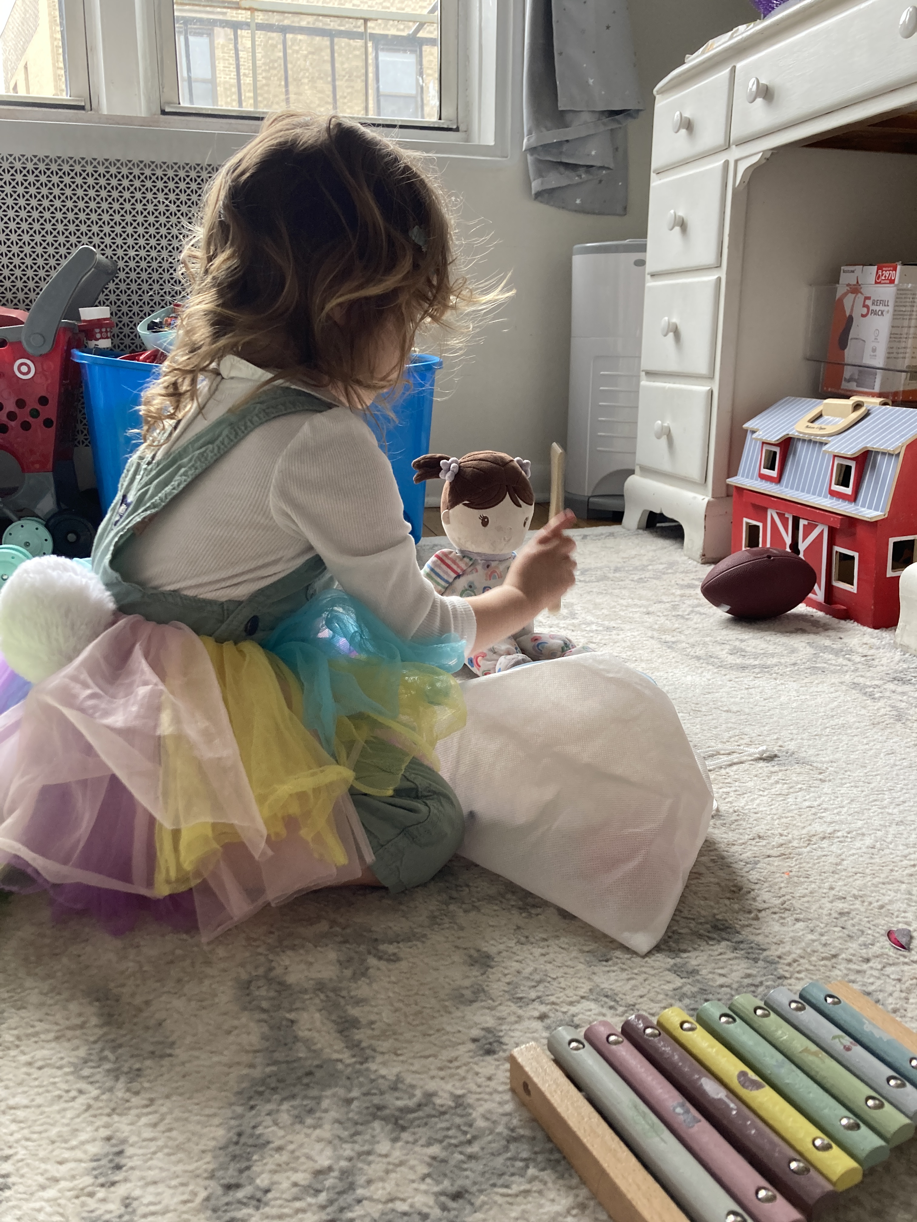 She may be only two but she’s talking a blue streak, sings all the songs, has some crazy one-liners and is fiercely independent. Yesterday she went off to school in black and white plaid pants and a rainbow dress with two differently colored socks but she got dressed mostly by herself … and the curls!!!