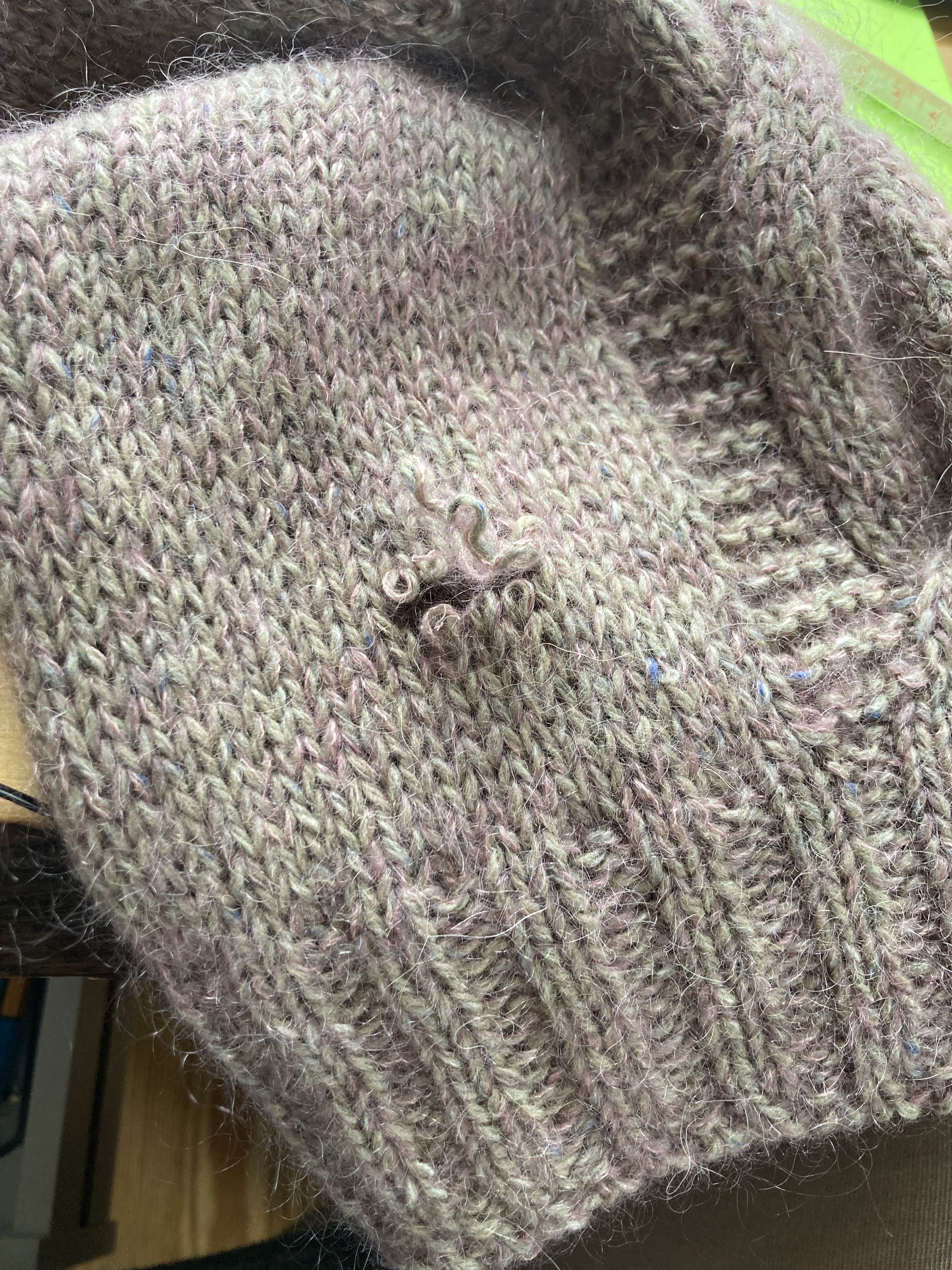 I still have Noah the horse in a project bag in my atelier. And the Jelly Roll blanket. And the pink embroidered mittens. BUT I chose to cast on the Stockholm Slipover by Petite Knits. I’ve been wanting to cast on for this for a long time and I thought I had stashed yarn to make it and then doubted myself and then found the yarn again and dove right in. I am knitting with a fingering weight (EYC Tenderfoot) and a lace weight mohair which is actually a suri alpaca (Halo by the Alpaca Yarn Co) held together. The fabric is dense and on gauge so it’ll be a warm vest. I am choosing the rounded collar and if I like it I may make the v-neck, too.