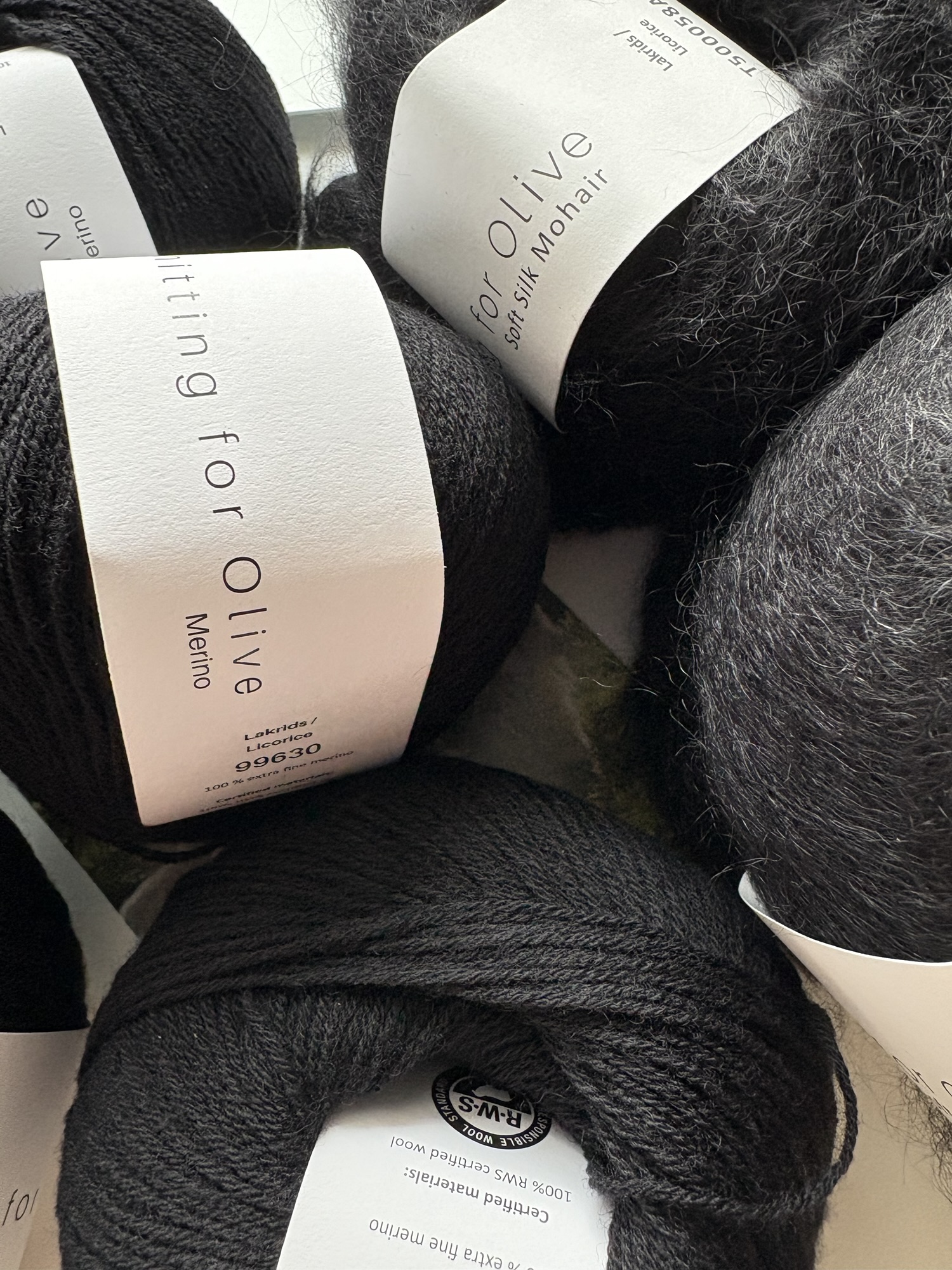 I snuck in a Knitting for Olive yarn order before they stopped shipping to the USA. I’ll be knitting one of their designs, too, for the first time. The Wilson sweater has a Henley feel without the buttons and with a collar. I need a black sweater and I think this one is classic and can be worn with our without something underneath. I’m really going to have to invest in a better light to knit with black yarn. (I also have some black linen to knit a sleeveless top with. I love black clothes, I cannot lie.