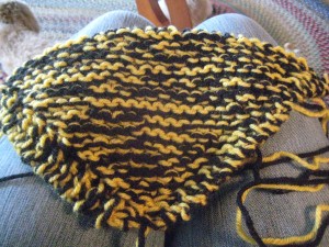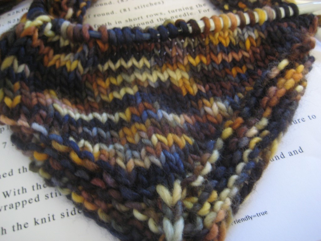 I have nearly finished a 1898 Hat for my dear husband and valentine. I’m knitting it in Malabrigo Rios in the Piedras colorway. It will match his scarf that I made last year. He works outside (in Maine, in the winter, in all kinds of weather) and the doubled garter brim of this hat ought to keep his ears warm! This yarn is absolutely amazing and I hope he’ll love it as much as I love him. He takes such good care of me. I can’t imagine life without him.